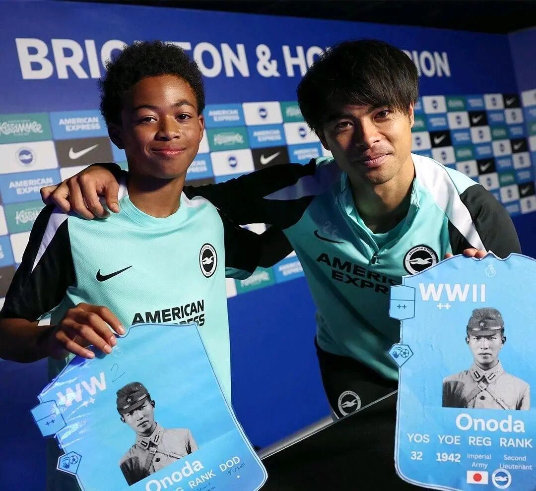 “我们非常珍视中国的球迷,绝无任何冒犯之意。”近日,英超布莱顿俱乐部就一张引发争议的图片道歉。图中,日本国脚三笘薰与一名小球员各自手持一张印有二战时日本军官小野田宽郎头像的卡片。
