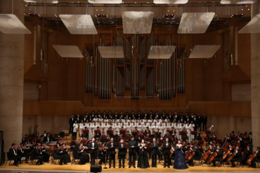 在推动“剧目驱动教学”“演学结合”等人才培养模式的同时,“北戏”还注重以构建“校—团”协同机制的方式重塑艺术教育新生态。今年6月,“北戏”与北京交响乐团(简称“北交”)正式达成战略合作。双方深度整合优质艺术资源,为青年艺术人才搭建优质展示实践平台。本次展演中,双方便联袂呈现了钢琴协奏曲《黄河》与《黄河大合唱》主题音乐会,为深化产教融合积累了宝贵实践经验。为使更多学生获得与全国优秀院团合作的宝贵契机,本场演出集结了“北戏”音乐系初一至大三的全体学生—参与了从声乐、民乐、西洋乐到领唱、朗诵的全过程。同台演出的“北交”艺术家们在排练与演出中采用“一对一”带教模式,让学子们近距离接受专业熏陶,直接汲取艺术养分,切实提升实践能力。