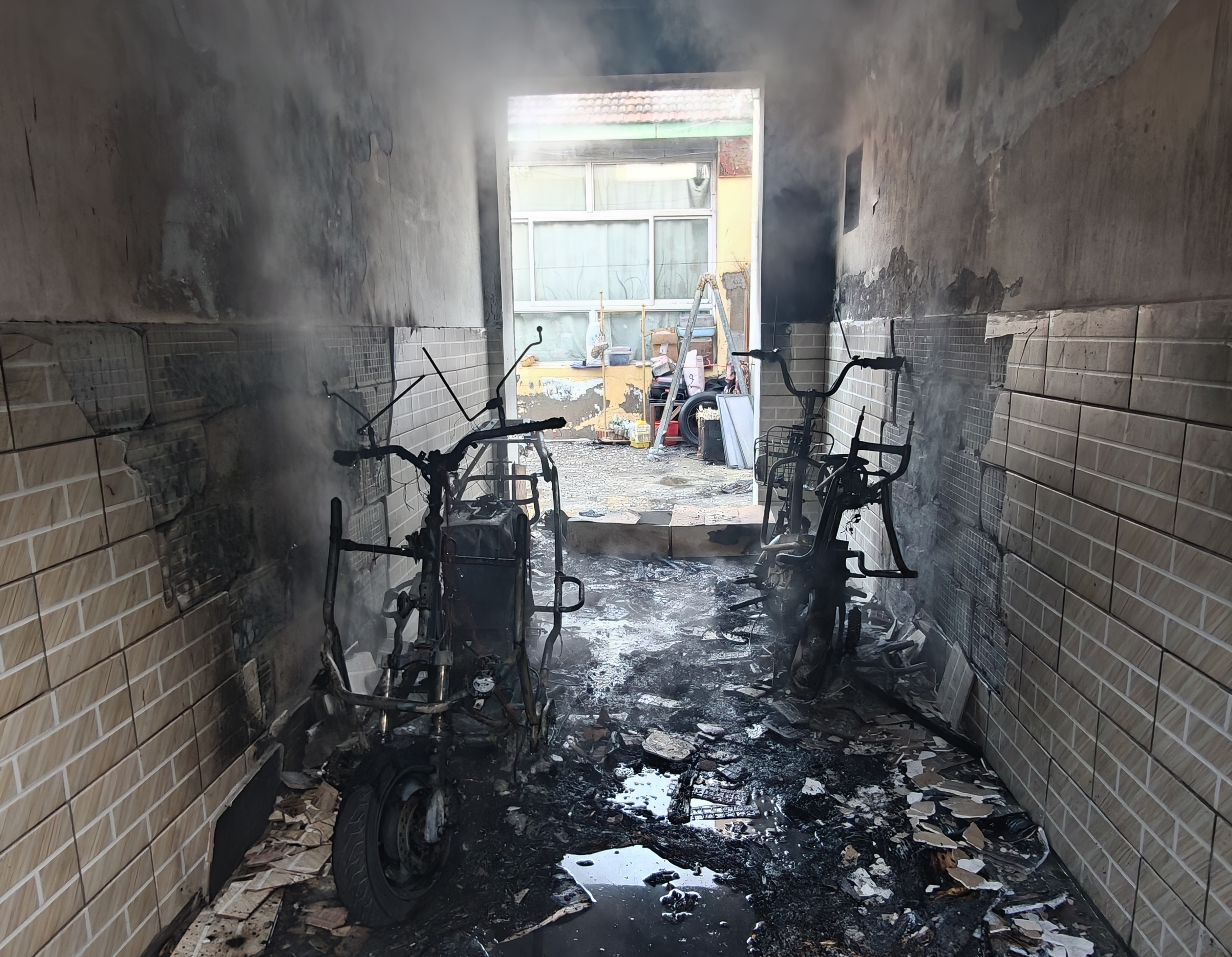 经现场勘查认定,此次火灾直接原因系电动自行车充电过程中电池发生故障,而车主违规将车辆停放在院内核心疏散通道充电,进一步加剧了火灾风险。