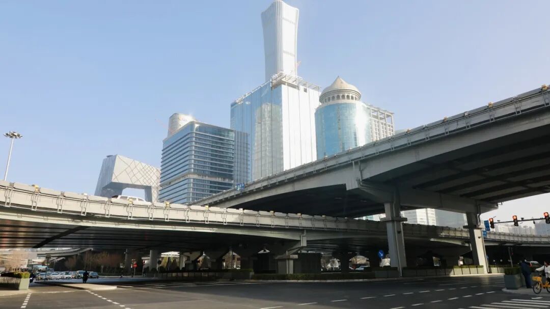 在路口布局方面,结合已有地下通道并新增人行横道,打通国贸桥下的“漫行廊道”。相关企业主动让出部分面积,共同完善慢行空间。国贸桥区东西向的通道由170米宽压缩至107米,行人过街时间从原来的120秒降低到现在的76秒,大幅提升通行便捷度。