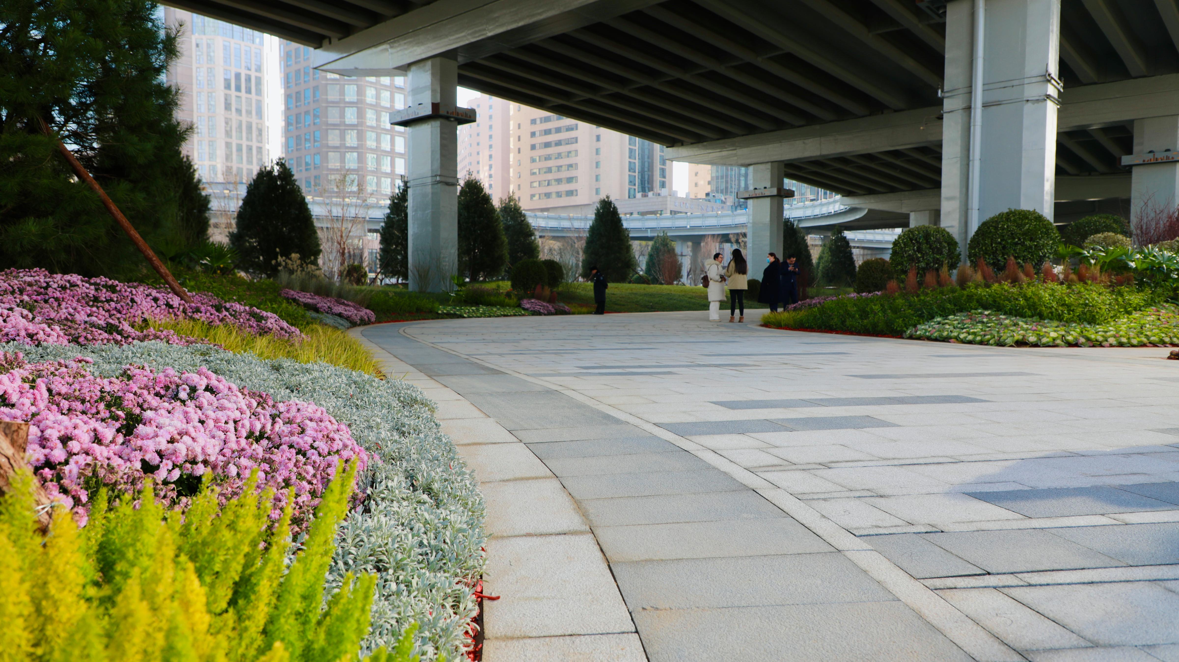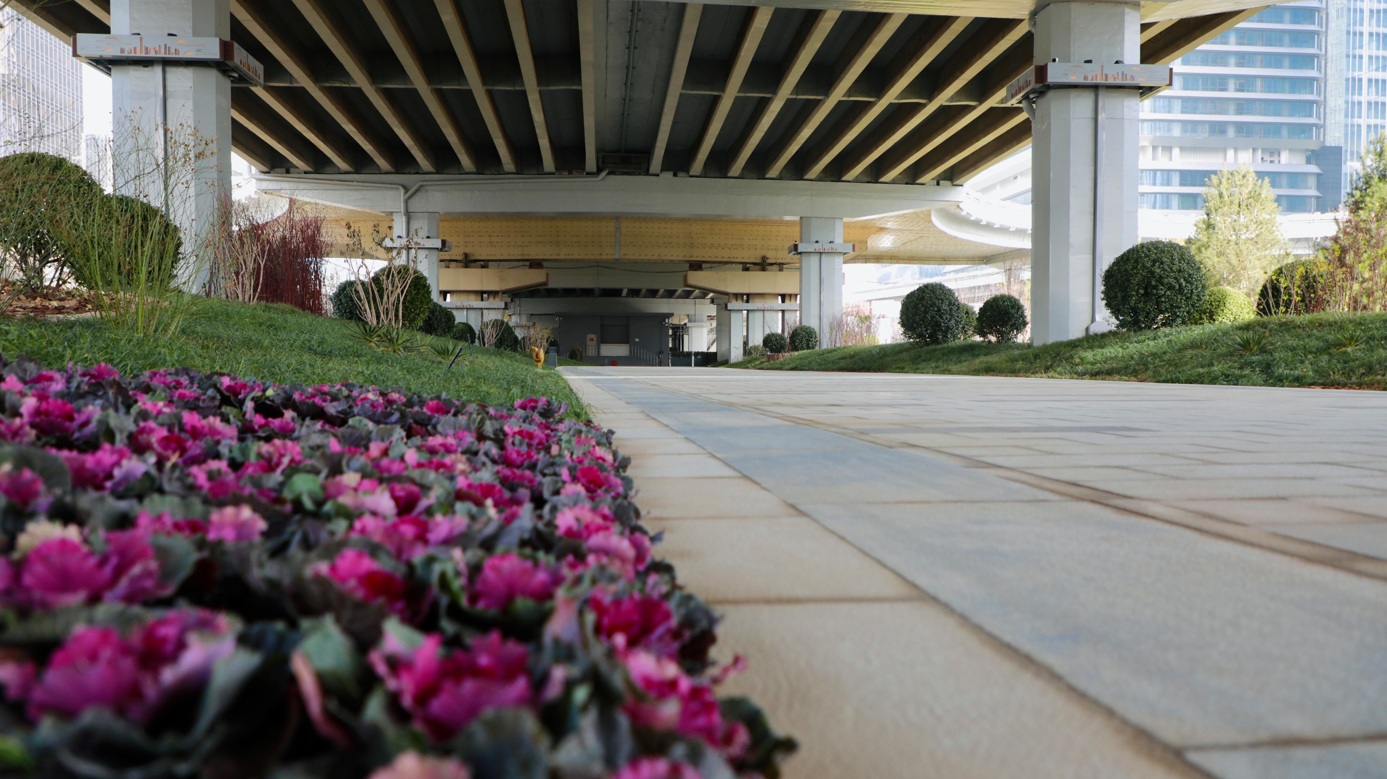 值得一提的是,我委整合了国贸桥区地铁站前广场、建筑前空间,推动桥下空间与周边环境有机衔接,在银泰等区域新增绿化,打开封闭空间,让美景自然渗透,实现了交通功能与城市生活的深度融合。