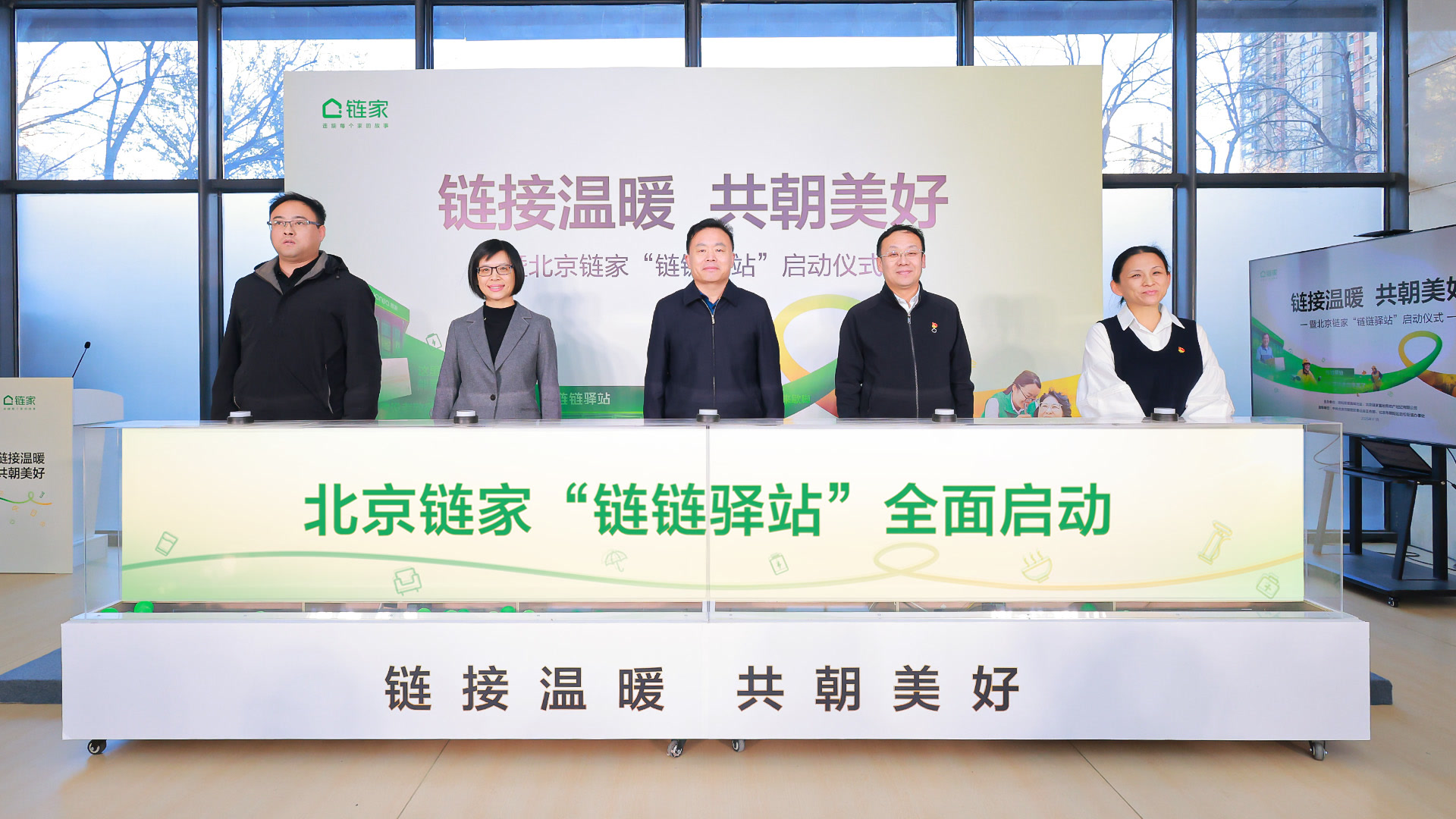 随后的点亮仪式上,与会嘉宾共同启动装置,标志着首批16家链链驿站正式投入使用。目前,链链驿站已覆盖朝阳区、西城区、通州区、大兴区、顺义区等多个区域,另有3家正在加紧建设中,有效弥补了部分门店距离社区较远的不足,为“一刻钟便民生活圈”建设提供有力支撑。在市、区委社会工作部指导下,在属地街乡、社区的支持下,北京链家切实落实时时有网、处处有家、人人有爱的“三有”友好城市建设理念,积极推进社区服务场景的创新实践,建成一批体现着城市温度、传递着友善爱心的链链驿站。