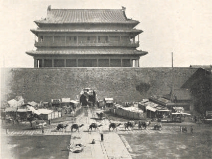 说老北京,往往大家会更聚焦“城门、城楼和城墙”这个显豁的类目。在《北大馆藏西文珍本中的老北京图像》中,“城门、城楼和城墙”的140余幅图像列于“北京附近的长城”和“宫城、皇城、坛庙、陵寝”中间,前后合起来构成了晚清至民国初期北京城墙变迁的动态视觉档案。从1861年“安定门城楼、箭楼和闸楼”的全景俯瞰,到1876年“城墙下的民居”俯拍视角,再到1900年前门瓮城的局部特写等等诸多图片,跨越半个世纪的影像共同勾勒出城墙从完整到破败的演变轨迹与历史现场。笔者拟结合《北平市政:1928—1948》中工务局呈文、《大都有城:一个考古人眼中的北京城墙与城门》中考古照片等文献,谈谈自己的新认知。