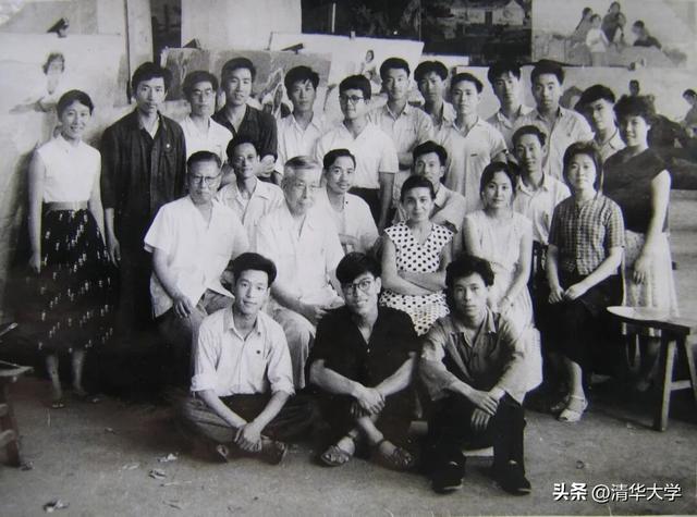 1963年,北京艺术学院美术系教师(二排左起:李瑞年、卫天霖、刘亚兰、邵晶坤;三排左起:萧肃、阿老、吴冠中、赵域)与1963届油画专业毕业生合影。