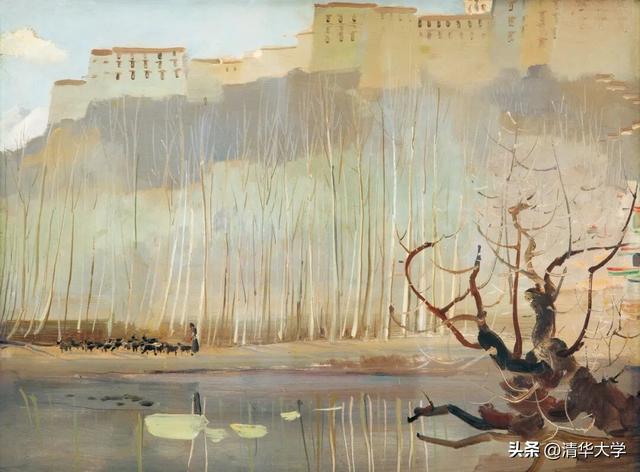 《拉萨龙王潭》,1961年,46cm×61cm,油画·木板