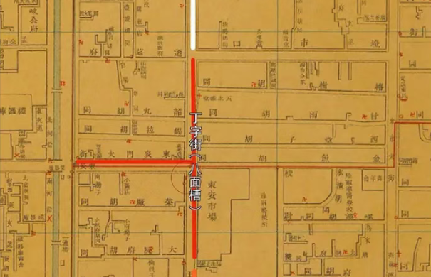 1914年京都市政公所成立后,首先选定王府井大街作为示范区域进行道路改造,工程包括拓宽道路、房屋基准线测量整修和修筑沥青道路等。1915年,北洋政府内政部绘制《北京详图》时,重新厘定地名,把王府井大街分成三段:北街称王府大街,中段称八面槽,南段由于有一眼甜水井,称为王府井大街。