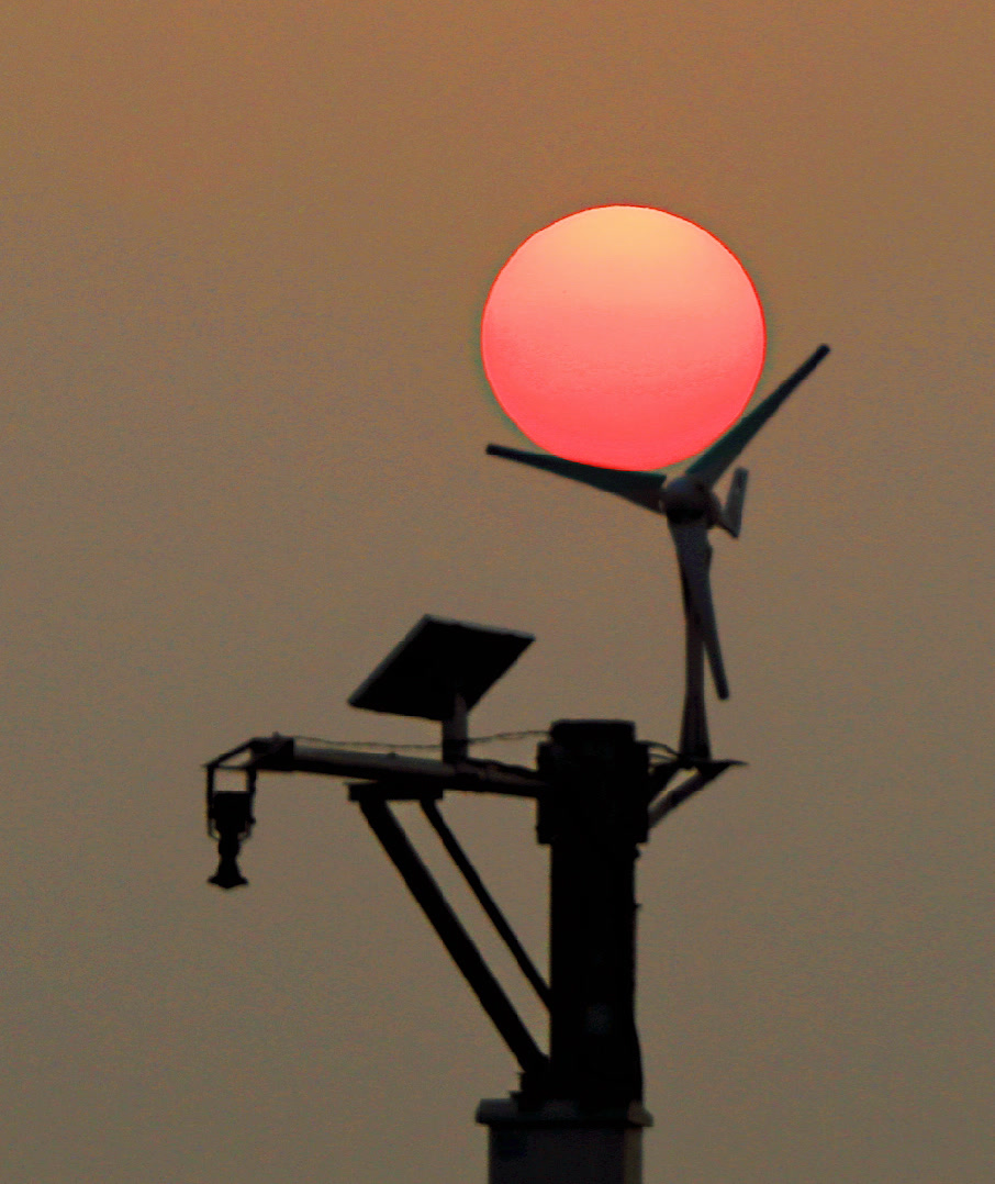 新仓,潮水测量仪,长年孤寂矗立在近海塘江面上。冬季到了,夕阳总会不请自来,围着它摆出一个又一个“pose”,上下左右温暖相伴。