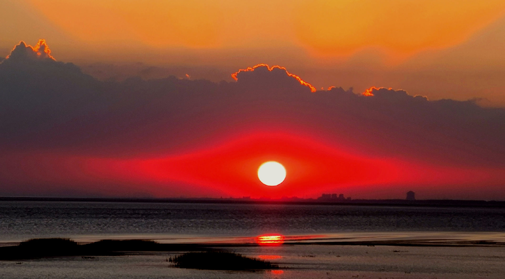 如果在滩涂槽沟江水中恰巧呈现“夕映彩云”倒影,更是美得如入仙境。
