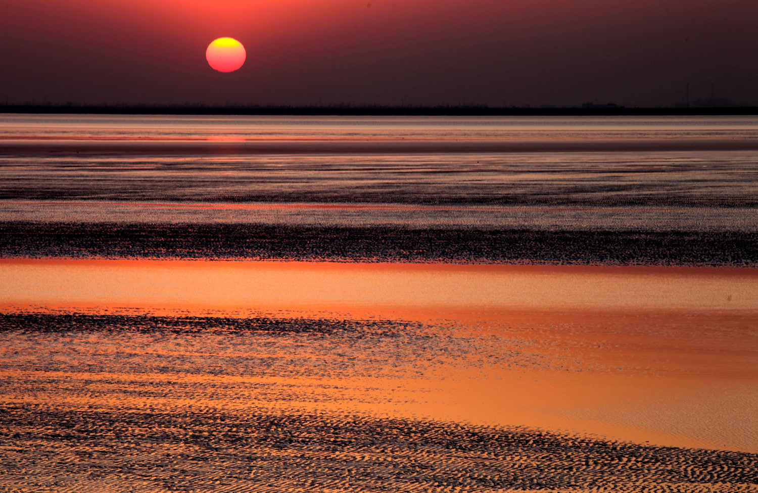 滩涂,因夕阳灵动