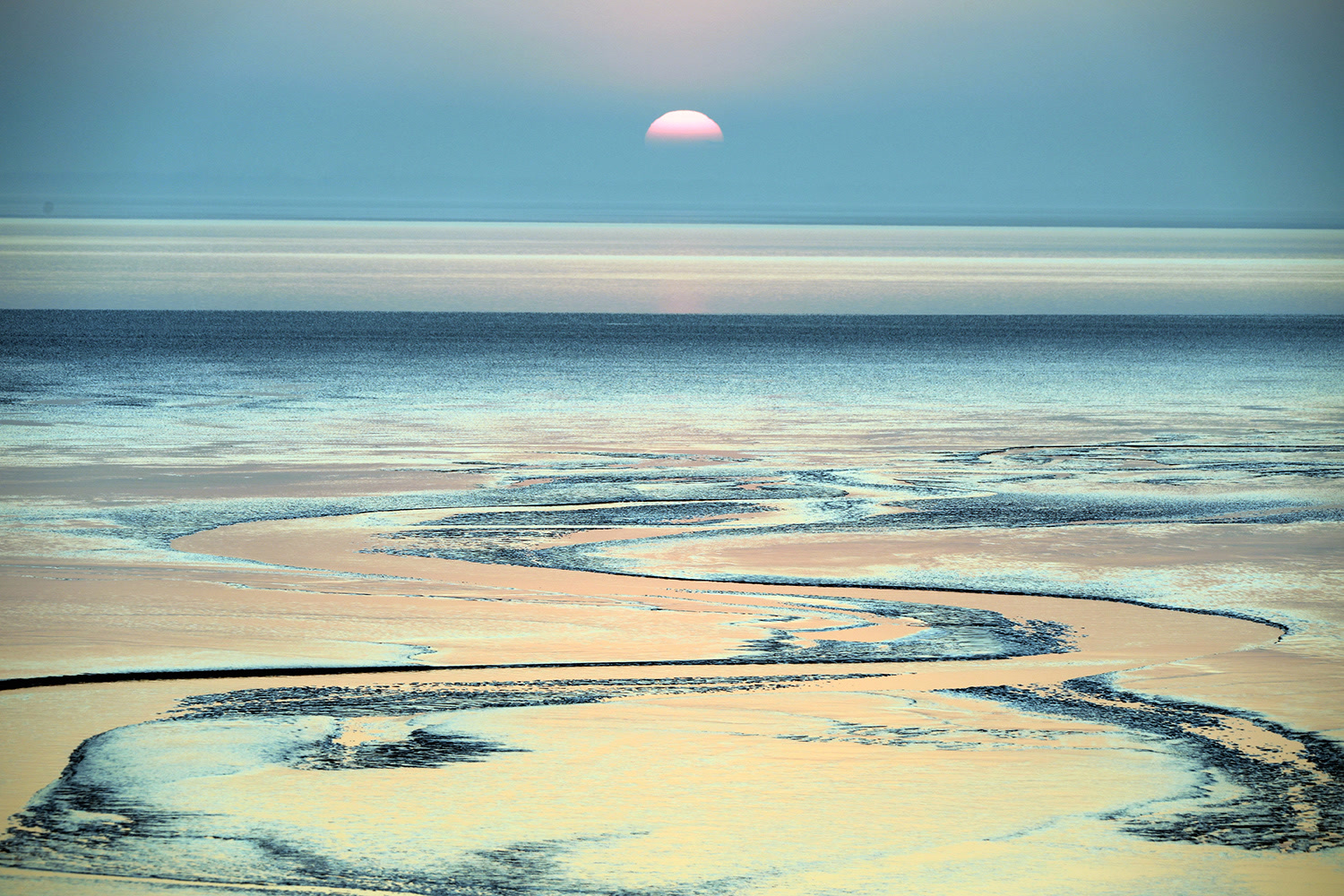 冬日夕阳与潮水的“约会”,潮型多样,光影精致,诞生了一个个唯美的画境。