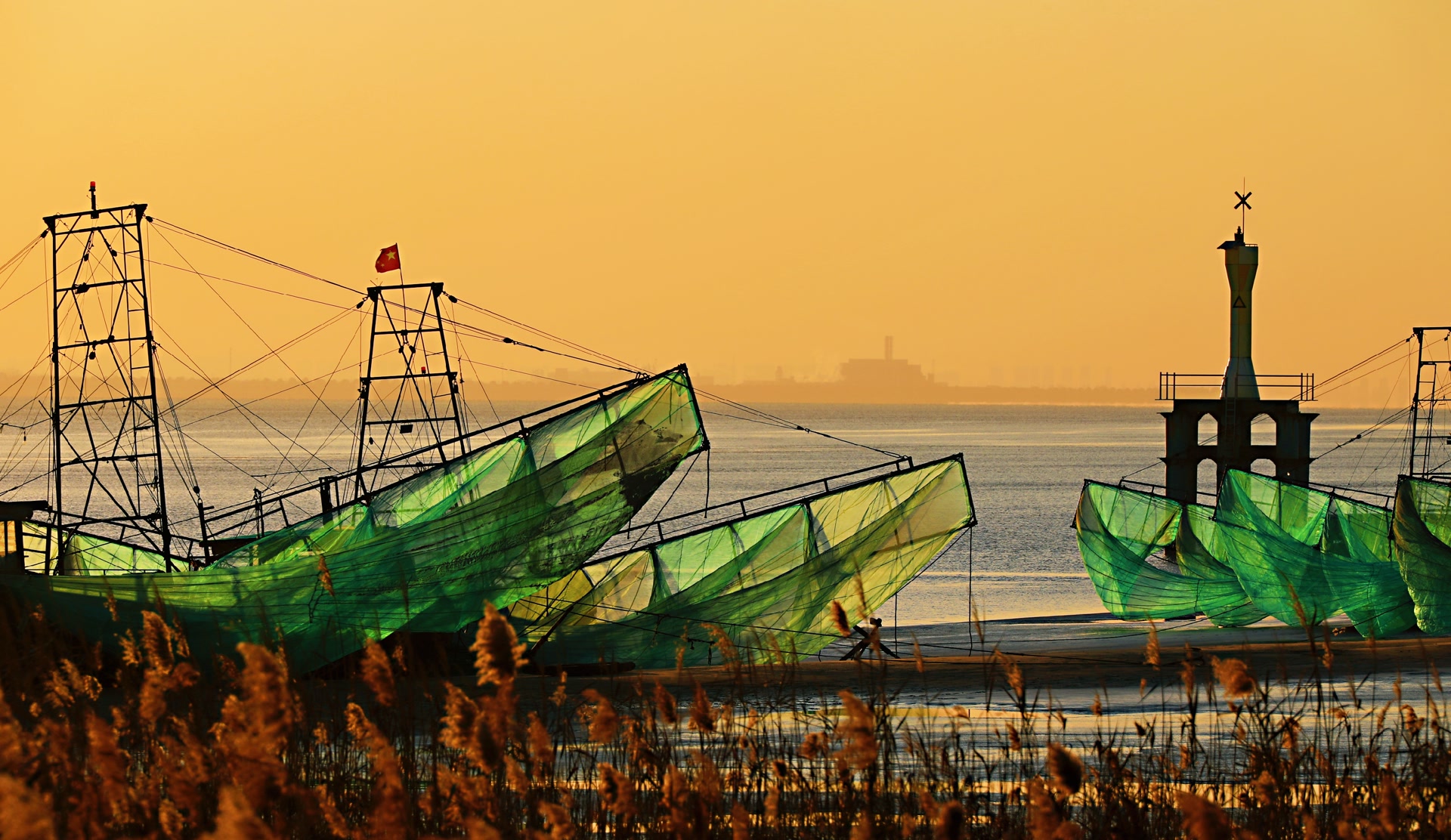 大缺口,每到暮冬时节,一艘又一艘获得捕捞鳗鱼许可证的渔船在此一字排开,在暖暖的夕阳中享受收获的喜悦。此时的江面上,夕阳中的捕捞船瞬间成为了钱塘江一年中难得一见的美妙风景。
