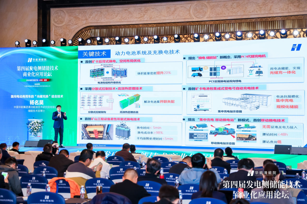 11月27日至28日,由中国华能集团清洁能源技术研究院有限公司主办的第四届发电侧储能技术商业化应用论坛在湖北武汉举办。本届论坛分为主论坛、专题分论坛以及闭门研讨会,来自电力央企、研究机构、储能产业链的近300名代表齐聚一堂,围绕新能源发电全面入市形势下的新型储能高质量发展机遇、政策解读分析、储能技术创新、储能应用场景创新、储能智能运维等热点展开深入交流。