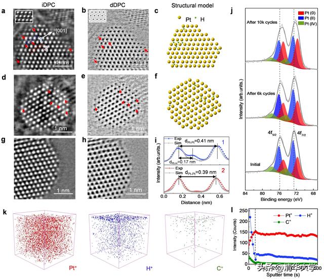 图2.氢吸附/脱附长期循环后铂纳米颗粒的DPC-STEM成像