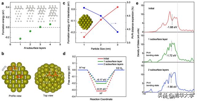 图3.铂纳米颗粒表面氢化物的形成能及其对氢电催化活性的影响