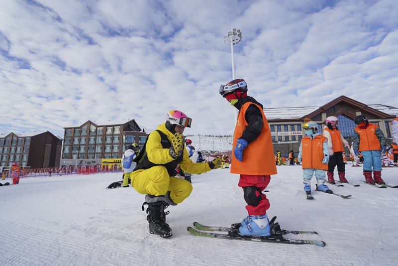 2025年12月1日,滑雪教练在阿勒泰将军山国际滑雪度假区给学生讲解双板滑行技巧。2025年12月1日至5日,新疆阿勒泰地区中小学生迎来首个“雪假”。“雪假”期间,阿勒泰市各大滑雪场为学生推出门票减免、雪具租赁优惠等政策,市区公交车对学生全程免费,降低出行成本。新华社记者 阿曼 摄