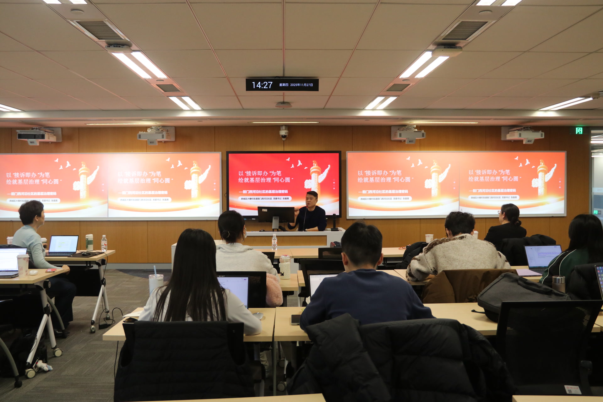 社区书记站上大学讲台,源于西城区社会工作部组织的“社区书记上讲台”行动。社区书记化身社区治理实践导师,通过原汁原味的社区故事和鲜活案例,实现教学相长。