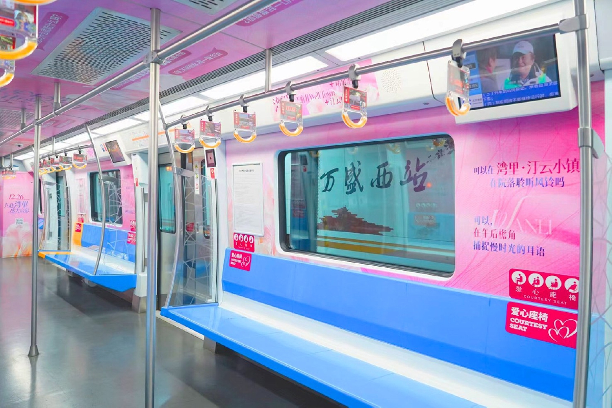 “湾里号”列车以项目核心元素为设计亮点,通过视觉呈现向乘客传递湾里“微度假目的地”的品牌形象。12月15日起,湾里还将在王府井、国贸、大望路、花庄等核心地铁站点打造品牌专区,并通过花庄站与项目出入口的无缝衔接,实现“从地铁站到度假区”的流畅体验。这种“轨道+商业”的空间联动,不仅强化了物理层面的交通便利性,更通过场景化设计促进客群流动与情感共鸣,生动诠释TOD(以公共交通为导向的开发)模式下的站城融合。