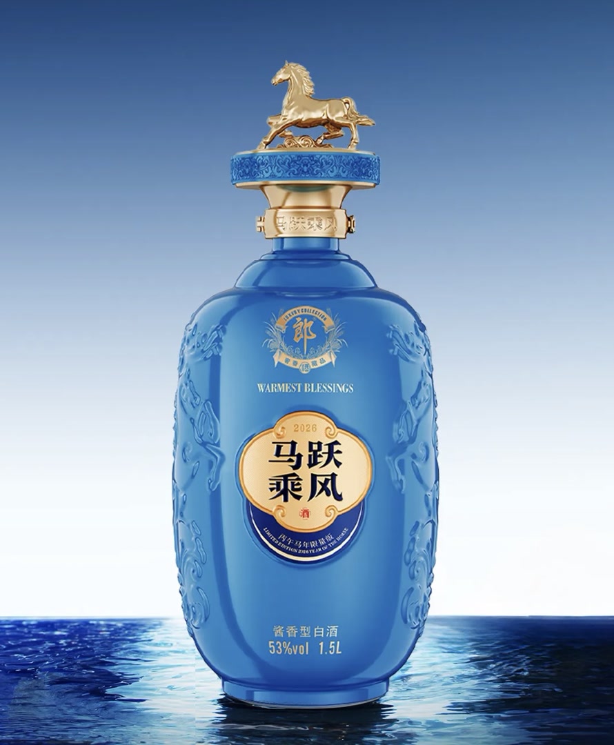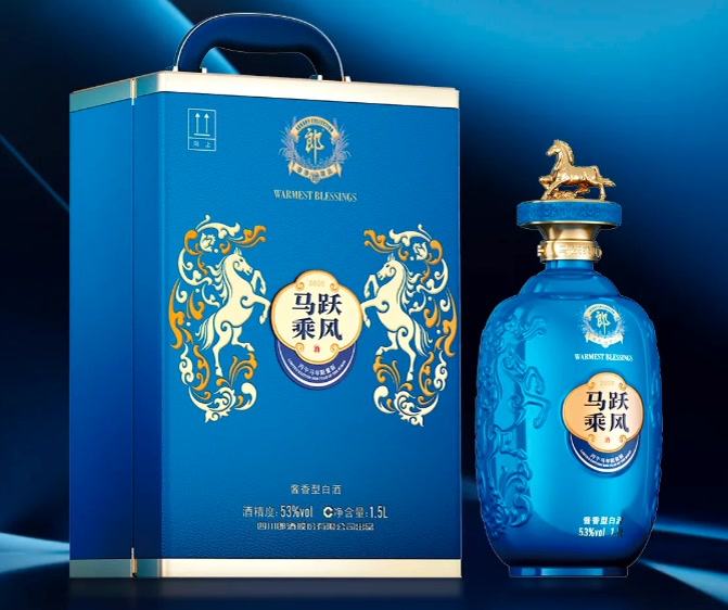 作为郎酒高端奢香藏品系列的小批量勾调、限量典藏之作,马跃乘风(丙午马年限量版)融合郎酒酿造匠心与传统生肖文化,以生肖马为主题,以新锐蓝色为主色调,寓意奋进通达、前程万里。