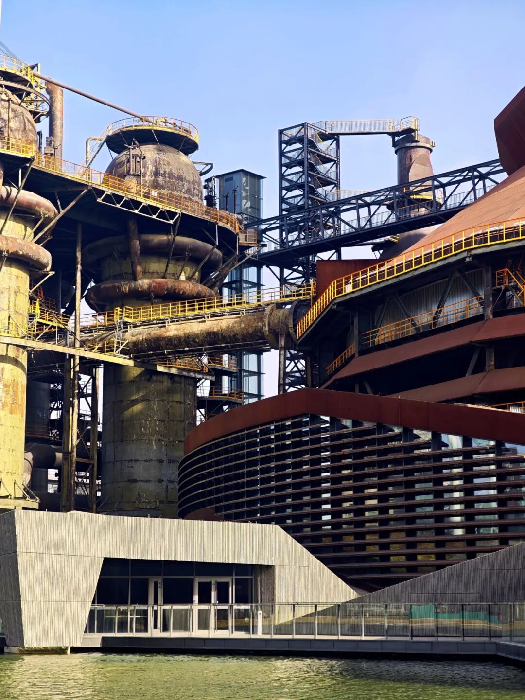 在看比赛之余,首钢园区内也值得花时间探索。穿过巨大的厂房和冷却塔,整个工业园区的开阔布局能看得一清二楚,穿行在钢铁巨构之下,感受这里独特的空间尺度。