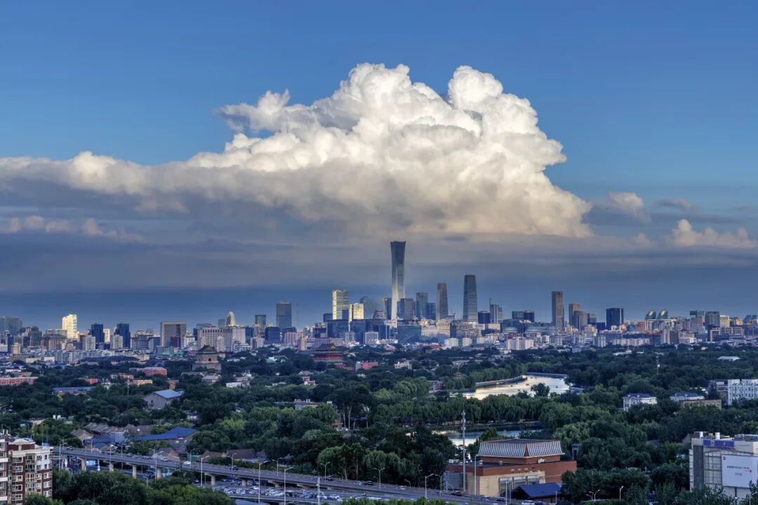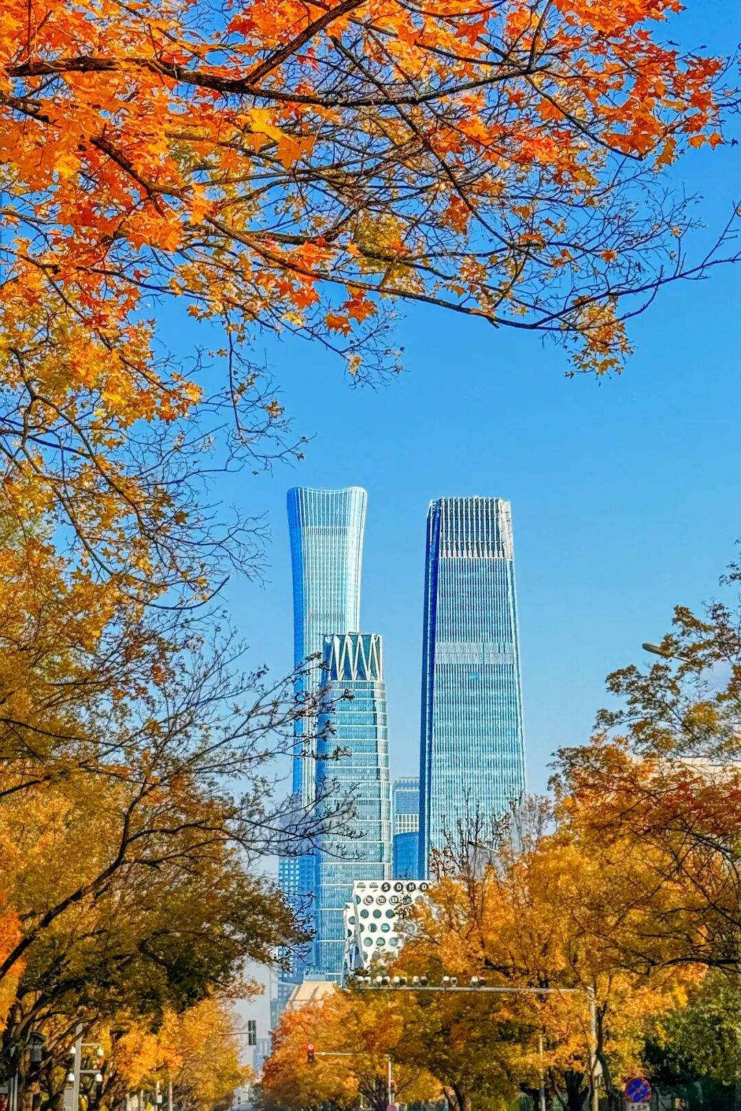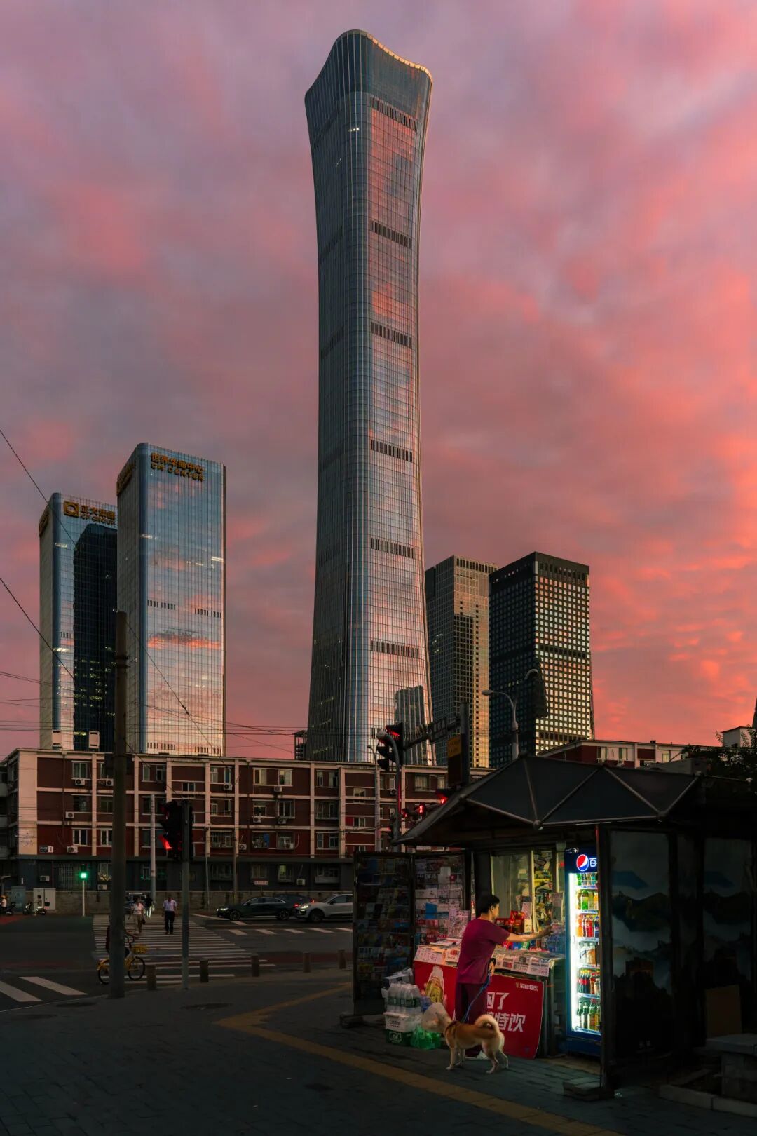 王世杰《冬天大雪后北京CBD中国尊和北京故宫博物院雪景》