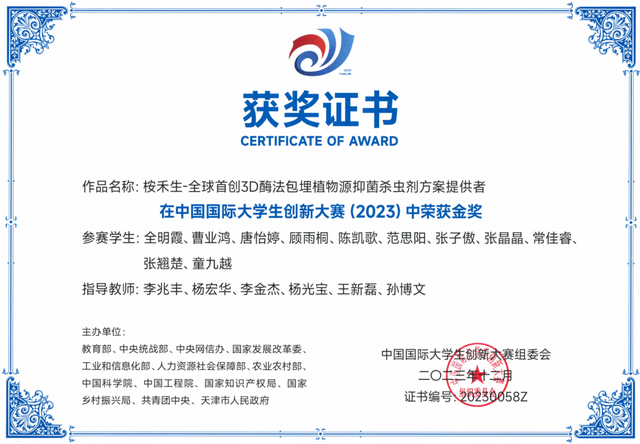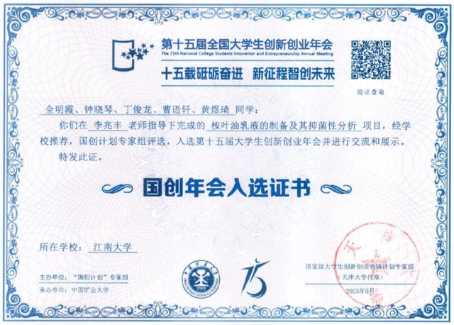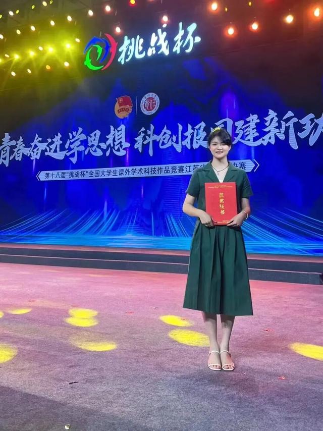 本科阶段,她牵头大学生创新创业训练计划国家级重点项目,从改善生物农药稳定性切入,带领团队埋首实验室,反复打磨实验方案、优化反应条件,最终实现项目优秀结题,成果成功入选大学生创新创业年会交流展示。在李兆丰老师的殷殷教诲下,深耕不辍的钻研让她的毕业设计脱颖而出,斩获江苏省本科生优秀毕业论文荣誉,让她对技术落地的细节有了更深认知。
