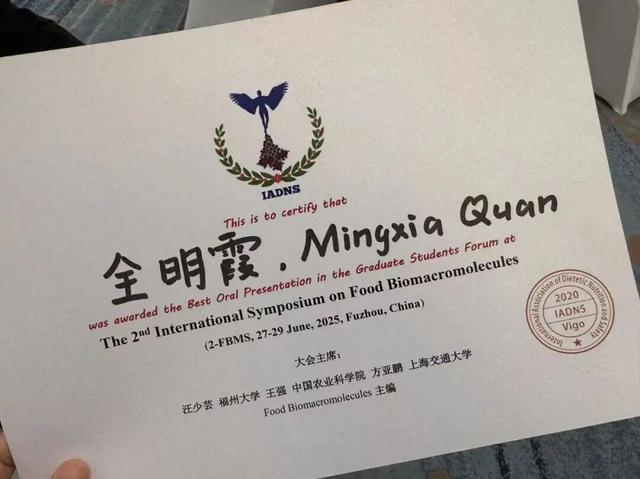 全明霞以科研攻坚显严谨,凭赛场拼搏见坚韧,用传帮带展担当,敢闯创业路践初心,始终突破自我边界。她是兼具学术素养与实干精神的优秀学子。望未来她能持续深耕食品科技,推动成果落地,以更昂扬的姿态逐梦前行,成为更多人追光路上的榜样。