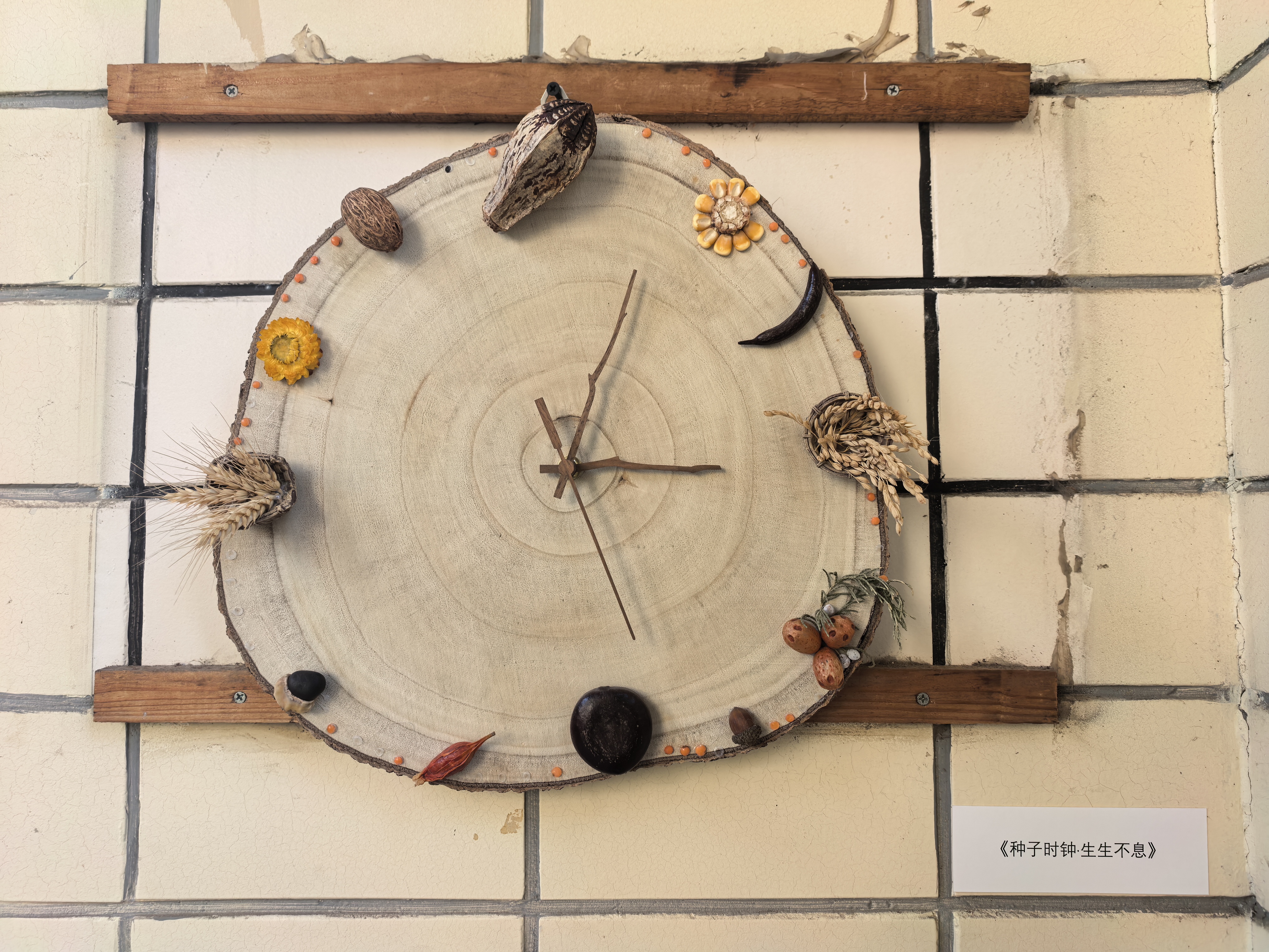 展厅入口处的“种子时钟”,巧妙地利用“种”与“钟”的谐音,将时间的流逝具象为生命的律动,发人深省。走入展厅内,100多幅由高倍数微距镜头拍摄的种子照片依次排列开来,吸引了观众的目光。这些作品呈现的种种细节,是肉眼无法察觉的微观结构:水稻颖壳上清晰的纵向棱线,苍耳表面排列整齐的倒钩刺突,棉花种皮外包裹的柔软棉纤维组织等,都令人非常新奇。