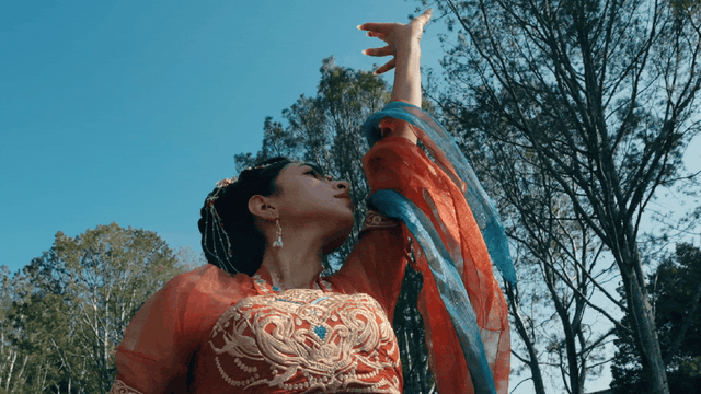衣角扬起,恍若瞬间换上了飞天的霓裳