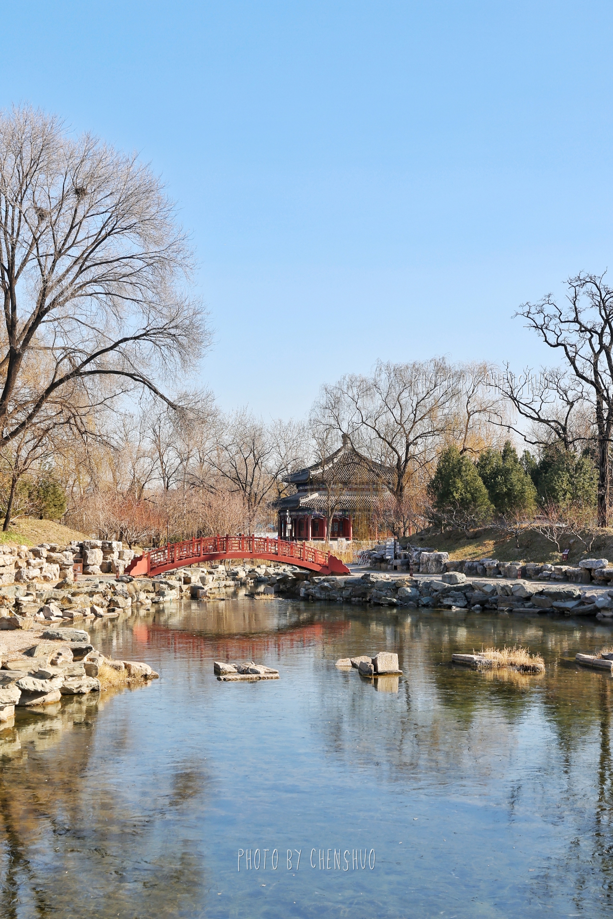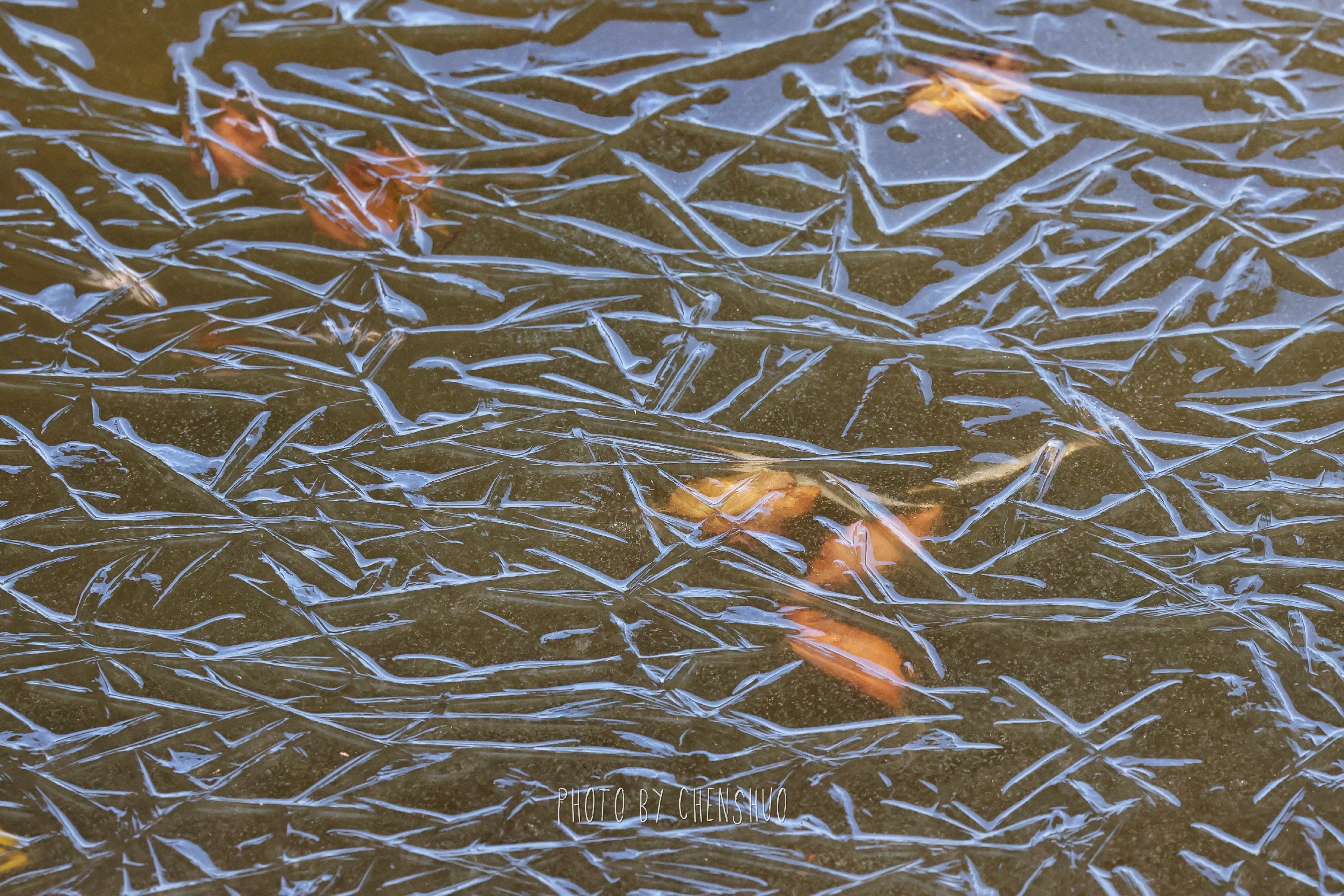北京的冬天一发力,圆明园的水面直接变成“自然艺术展”。