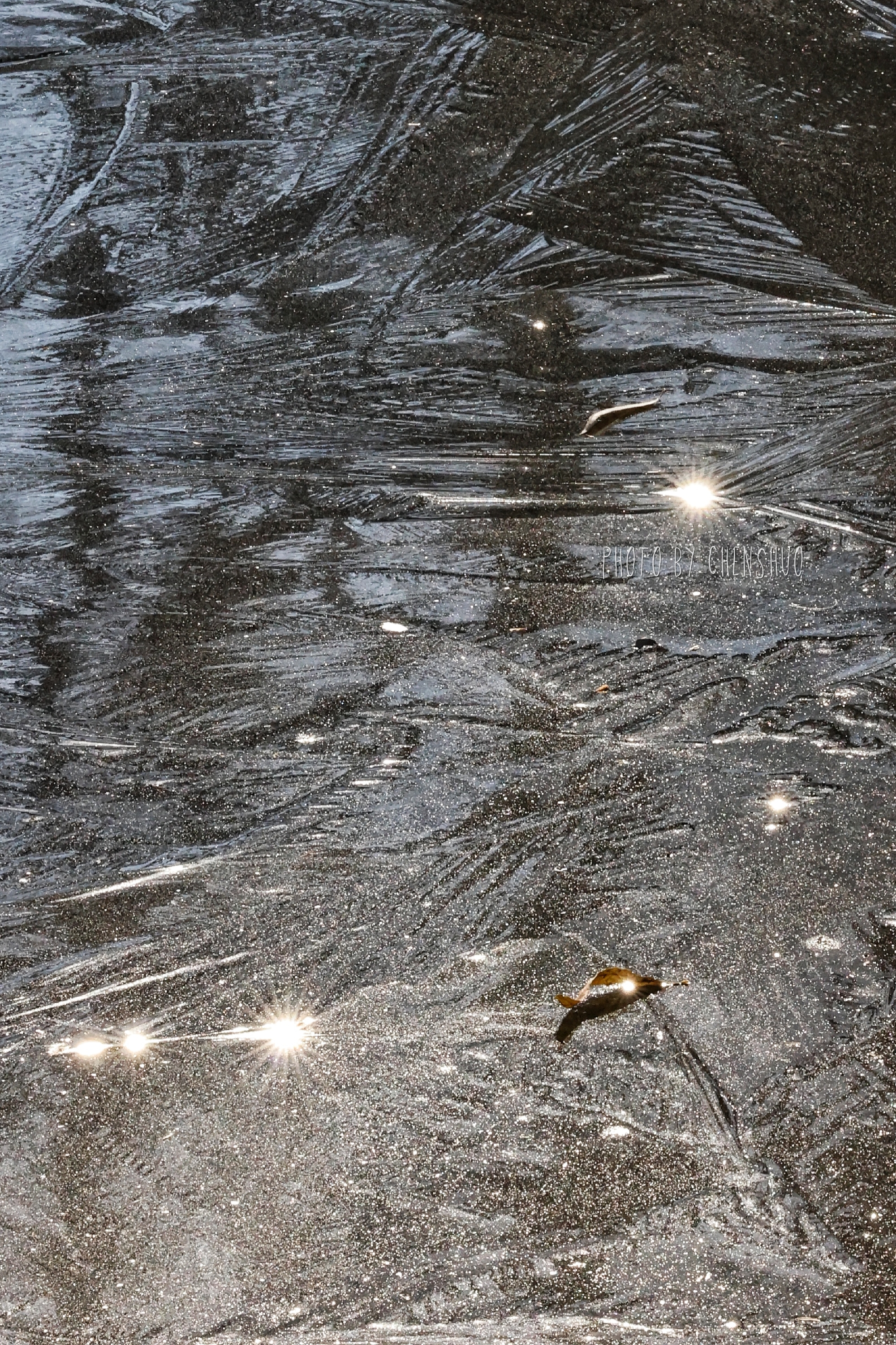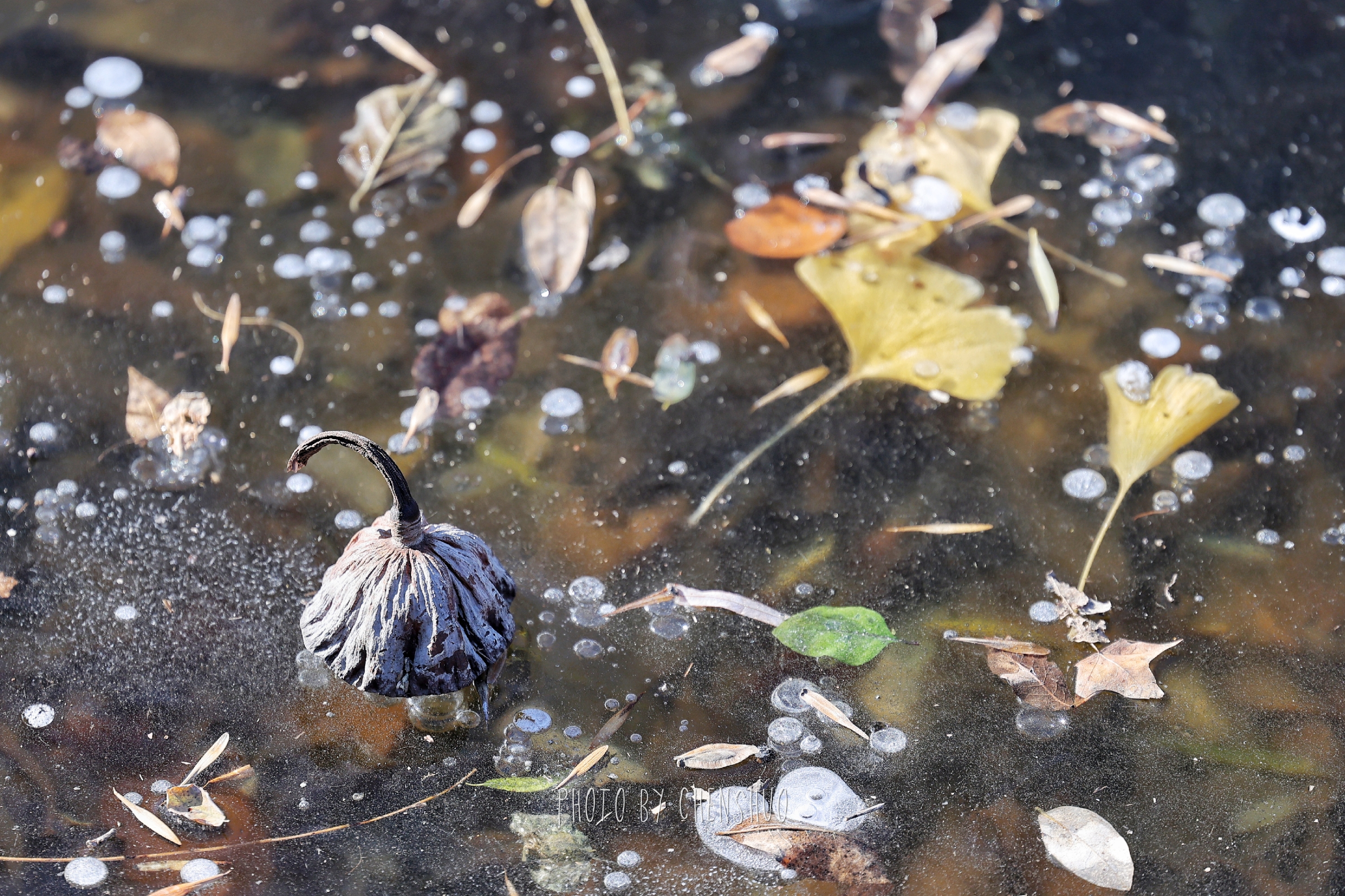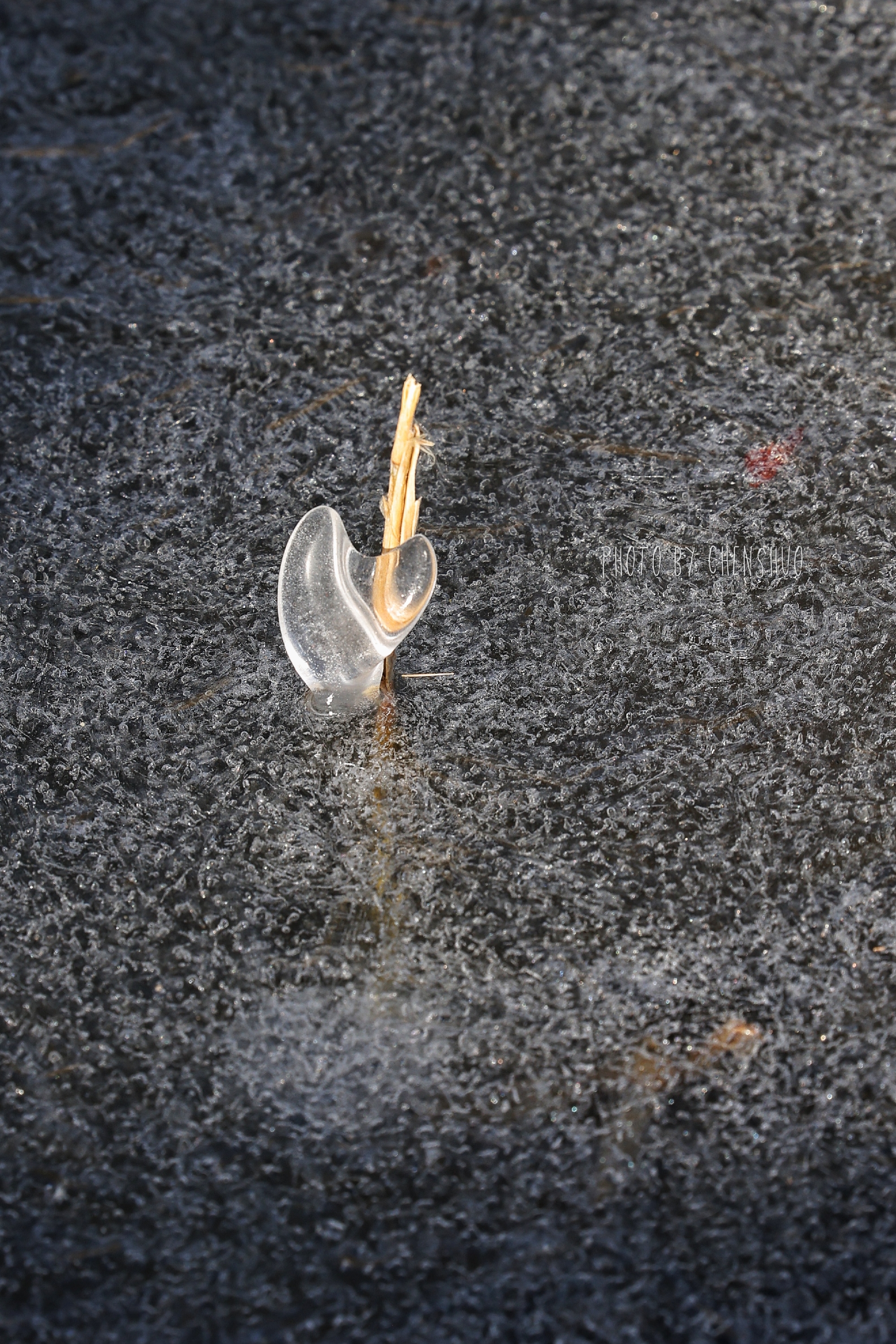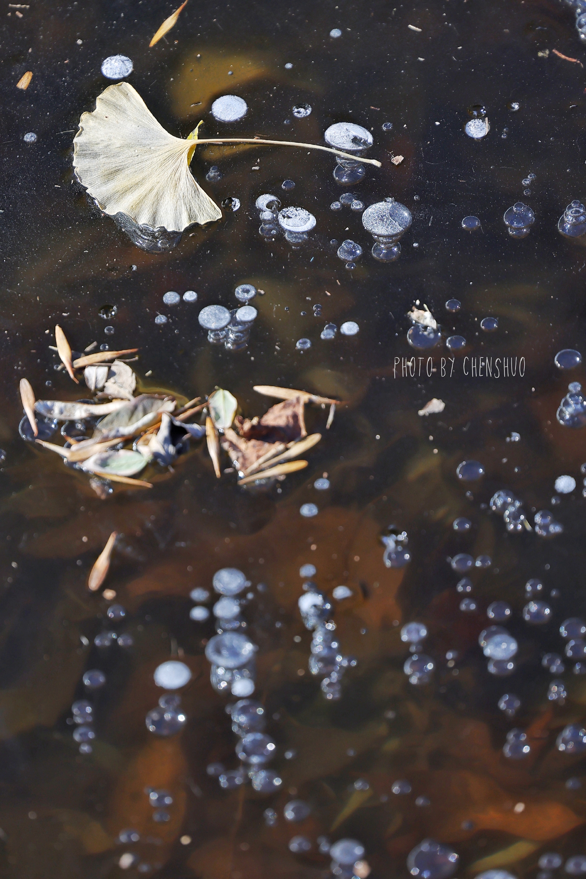 冰里裹着枯草好像“水晶琥珀”。石头边挂着的冰锥像不像谁偷偷藏的水晶帘?连水里的气泡都被冻成了一整池“碎钻”,每一张都像开了自然滤镜!
