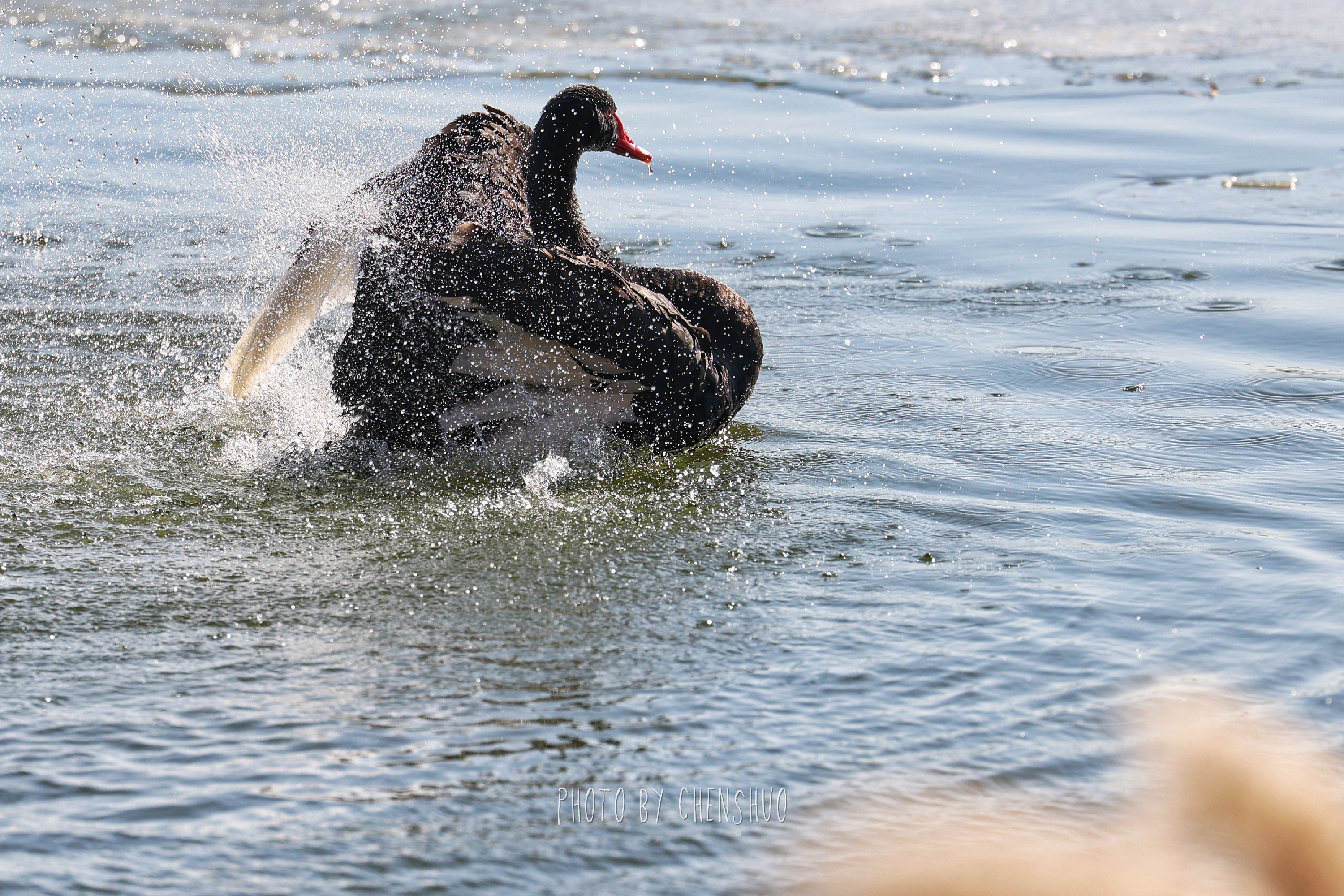 黑天鹅在未结冰的水面缓缓游弋,细长的颈项划出优雅弧线,羽毛在阳光下泛着温润的光泽。几只水鸟不时从岸边掠过,激起细碎的涟漪,与黑天鹅相映成趣,为冬日的静谧增添了灵动的气息。