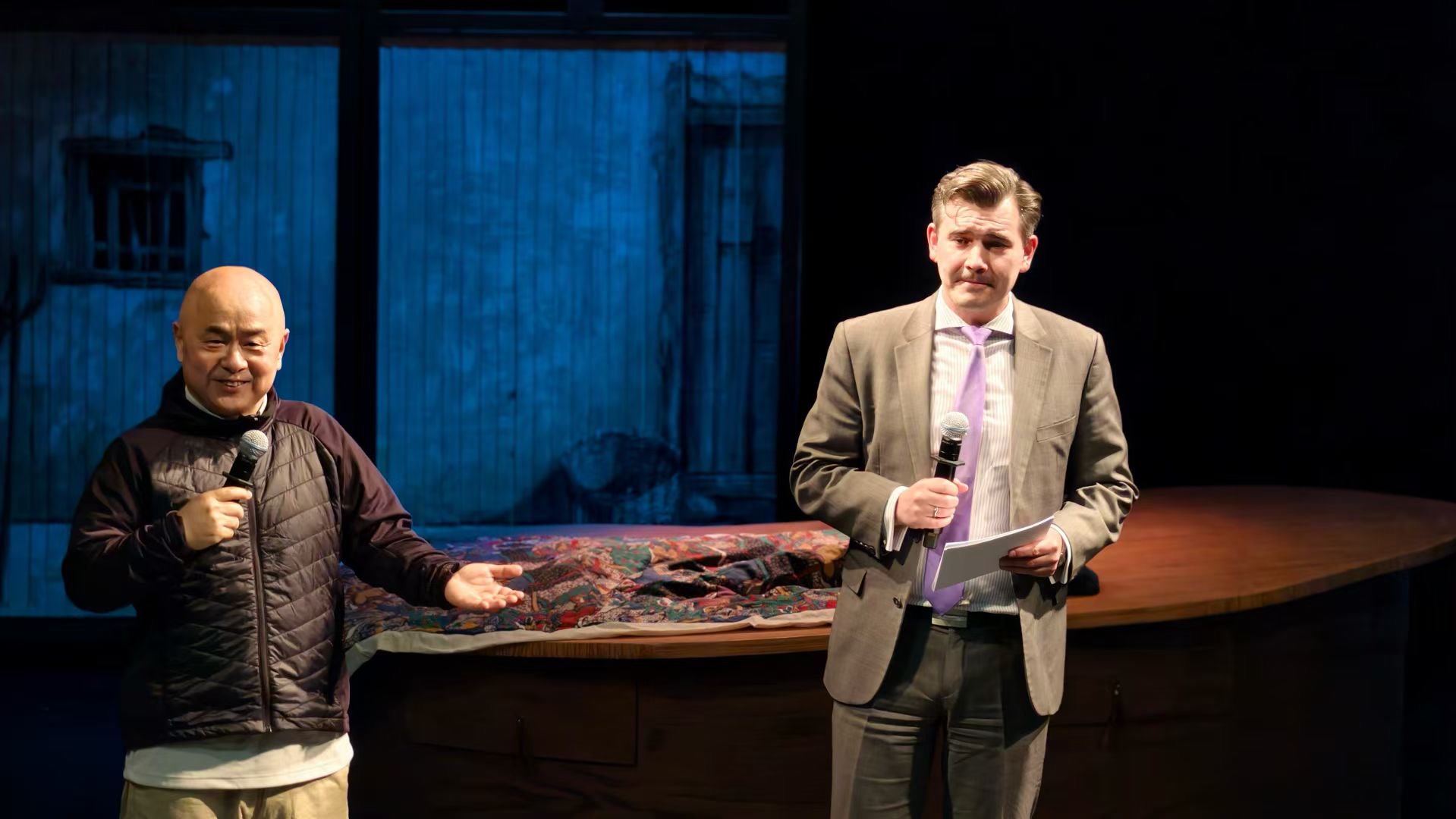 《山上的耶伯》首演当晚,该剧导演邵泽辉与霍尔堡剧作合集《山上的耶伯:霍尔堡喜剧五种》的译者京不特共同主持了首演礼。来自丹麦、挪威的大使与学者,和中国嘉宾与观众齐聚一堂,共同见证霍尔堡戏剧在中国舞台的“创造性转化”。