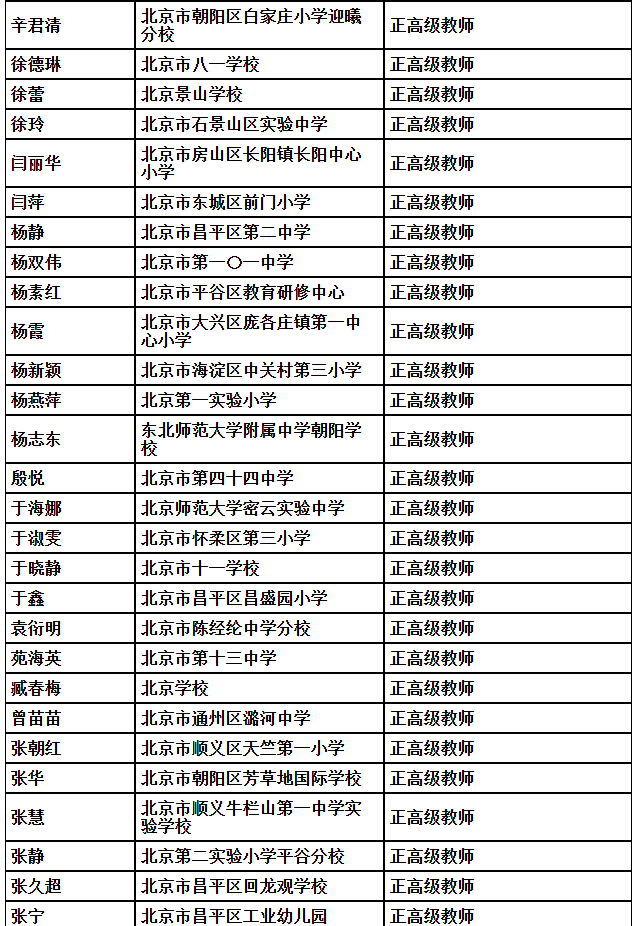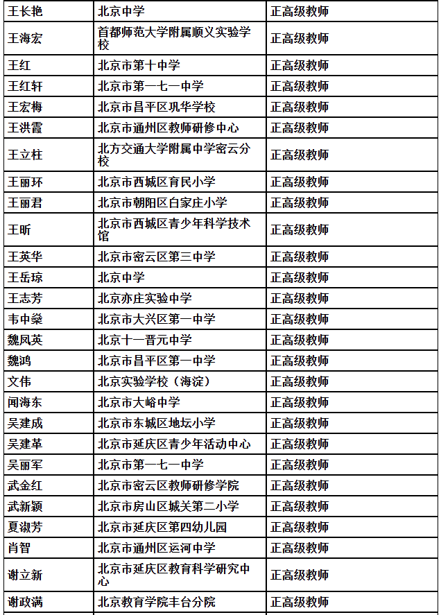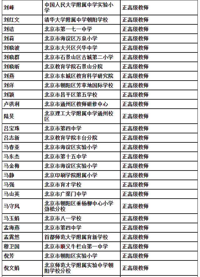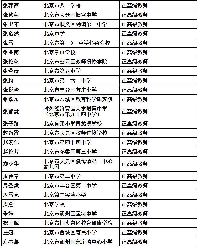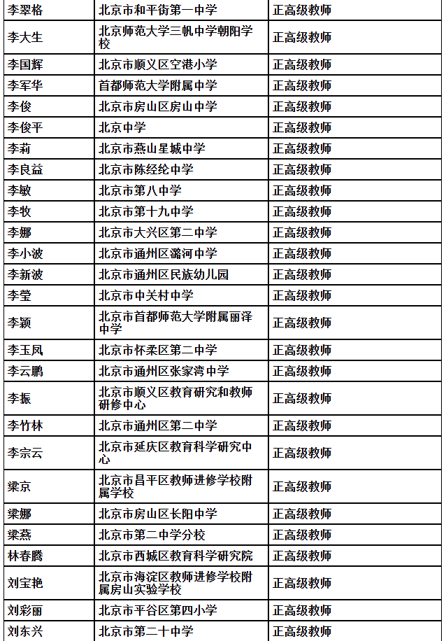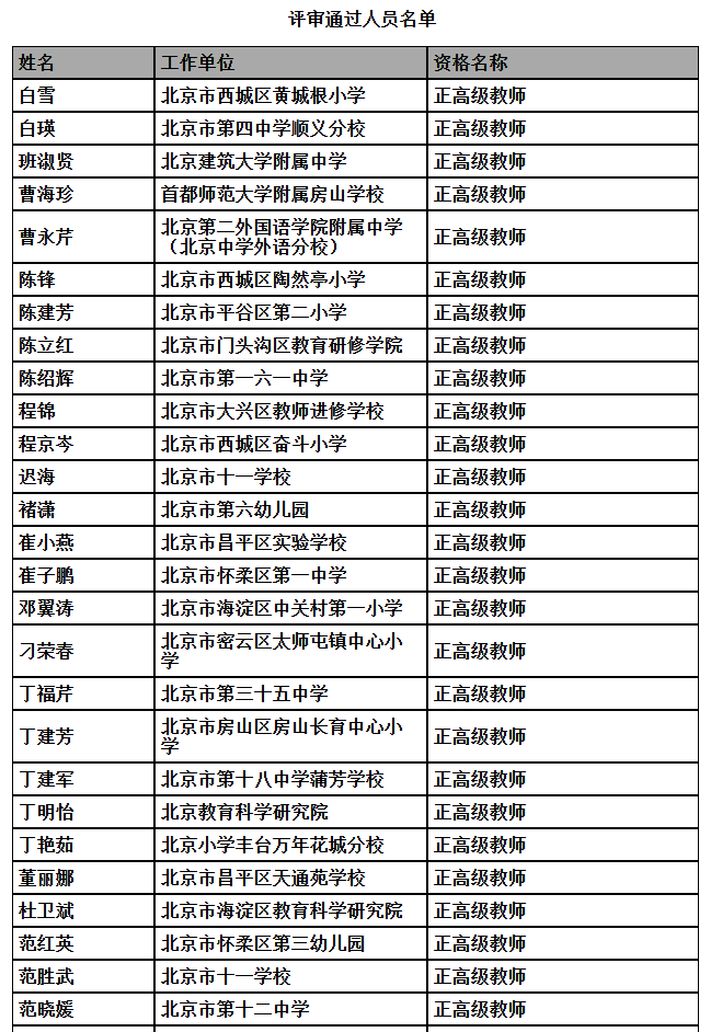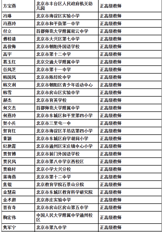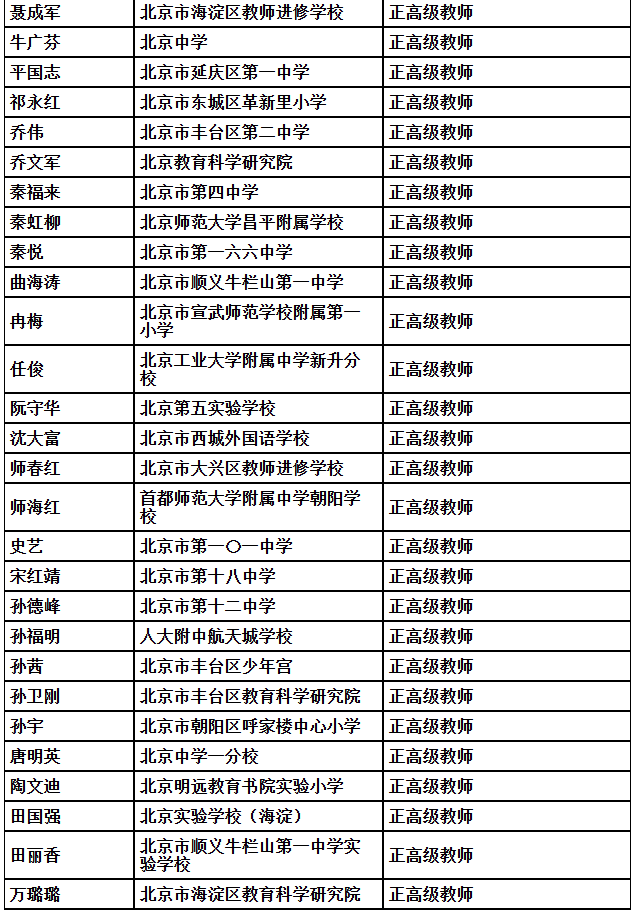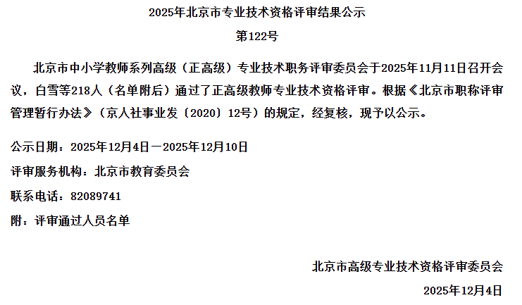 2025年北京市高级(正高级)专业技术资格评审结果公示(北京市中小学教师)