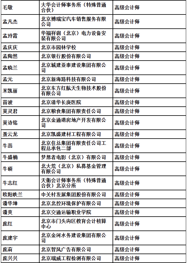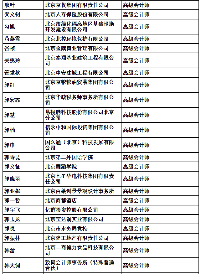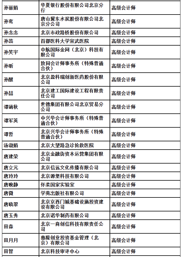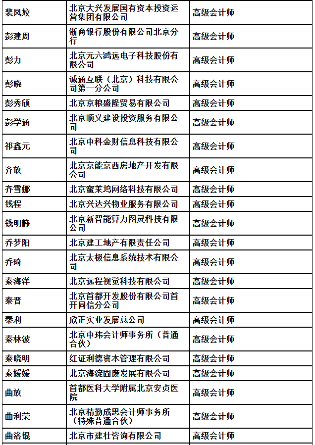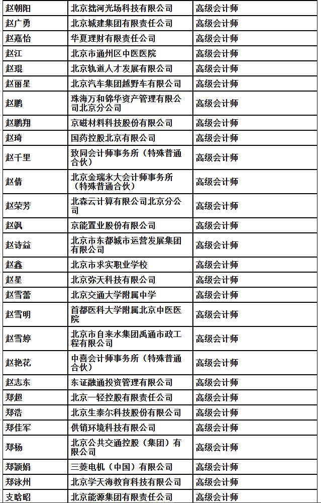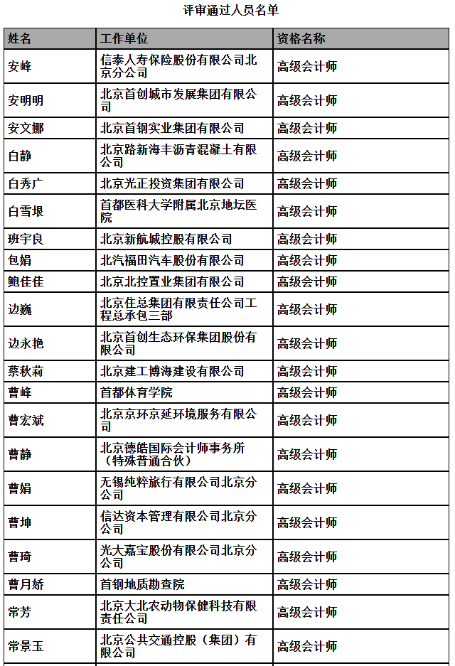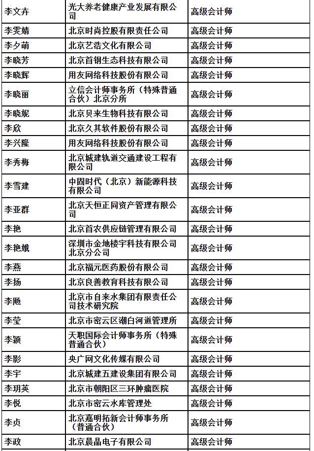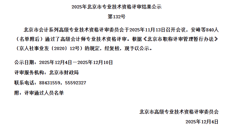 2025年北京市高级专业技术资格评审结果公示(会计)
