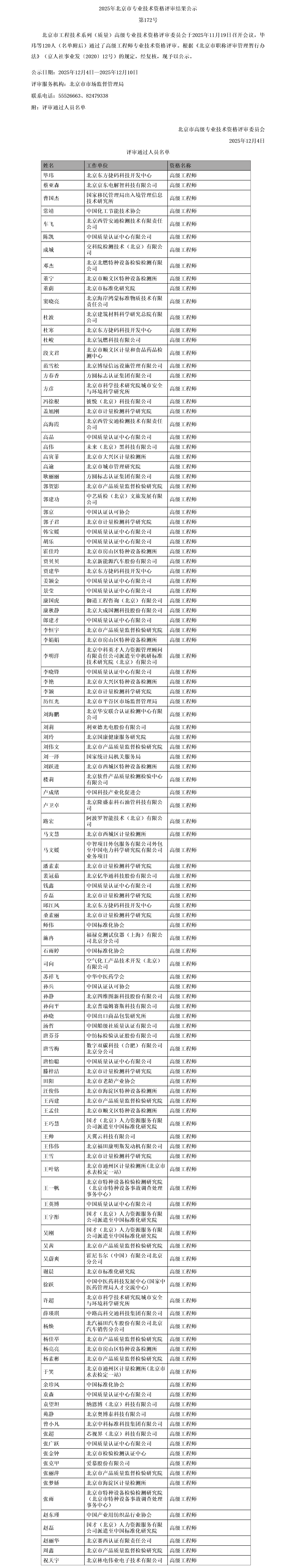 北京市高级职称评审结果公示:工程技术系列质量