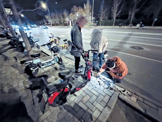 不到一个小时,这处路灯下的二手电动自行车售卖点就卖出3辆车。记者发现,这里的买家绝大多数只关心价格和续航,不关注车辆购买凭证、改装及过户等问题,交完钱便提车离开了。