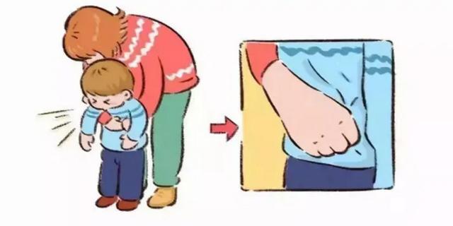 2. 用另一只手掌根,在婴儿背部两肩胛骨之间用力拍打5次。