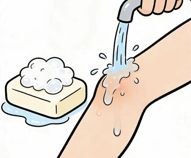 · 用清水或生理盐水冲洗伤口,清除异物。