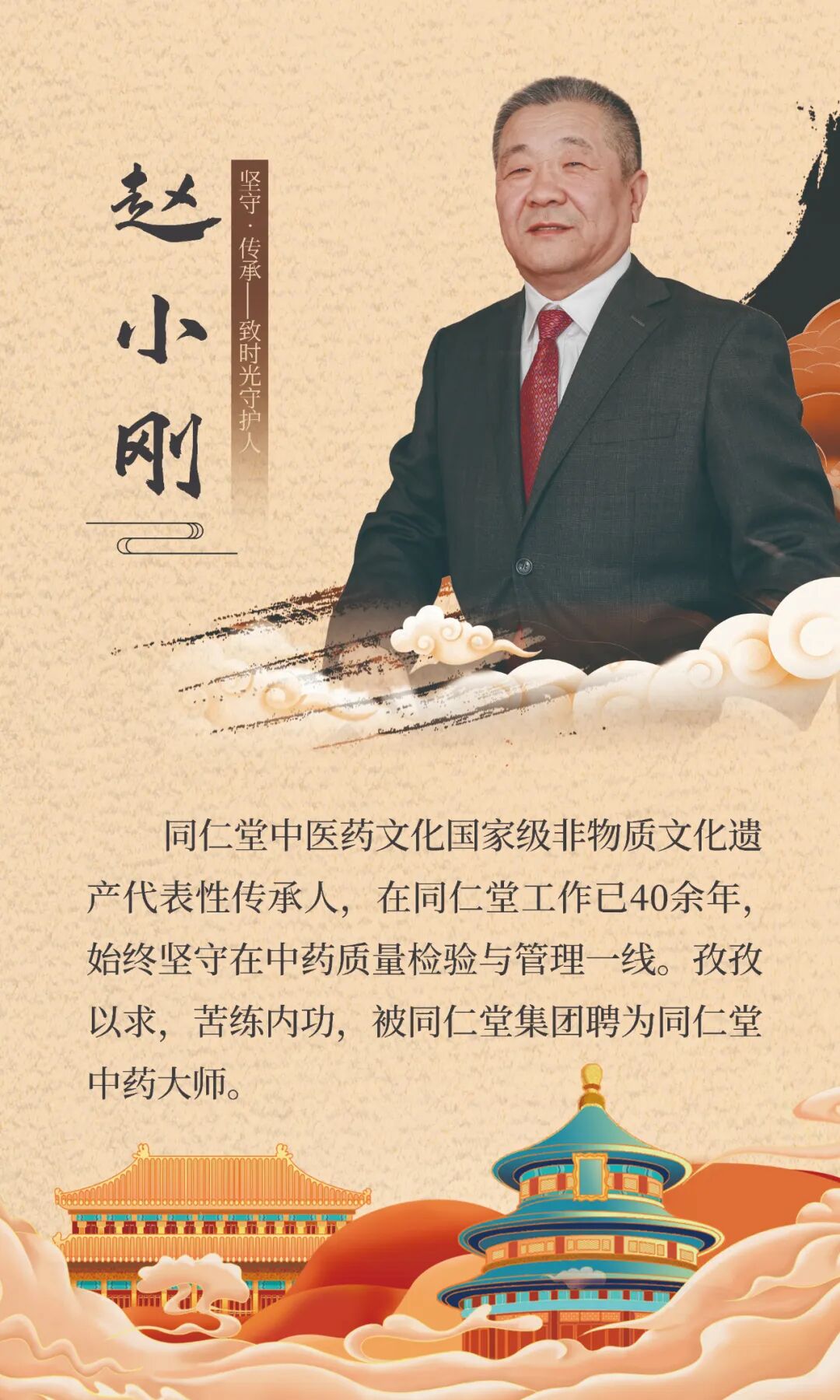 尽心、尽力、尽责,回首从业经历,赵小刚给出了这样三个关键词。每年经手检验各类药品价值数亿元,杜绝伪劣药品价值达数千万元,41年来发现并杜绝假药百余种——这是赵小刚在同仁堂交出的“成绩单”。但他并未止步于个人技艺的精进,而是将更多精力投入到行业标准化建设与人才培养中。