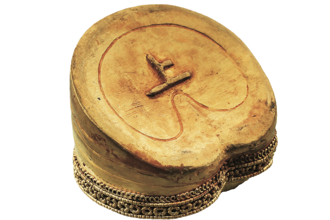 此次将在路县故城遗址博物馆举办的“海昏侯:身历王帝民侯,墓藏大汉风云”特展上展出的展品,有褭蹏金、麟趾金、饼金等多种形制的金器,其中墨书“南藩海昏侯臣贺所奉元康三年酎黄金一斤”饼金,更是直接印证西汉酎金制度。酎金制度是西汉与宗庙祭祀相关的重要制度。“酎” 为正月始酿、八月成的醇酒,每年八月皇帝太庙祭祖时,诸侯王、列侯需进贡黄金助祭,此金即“酎金”。