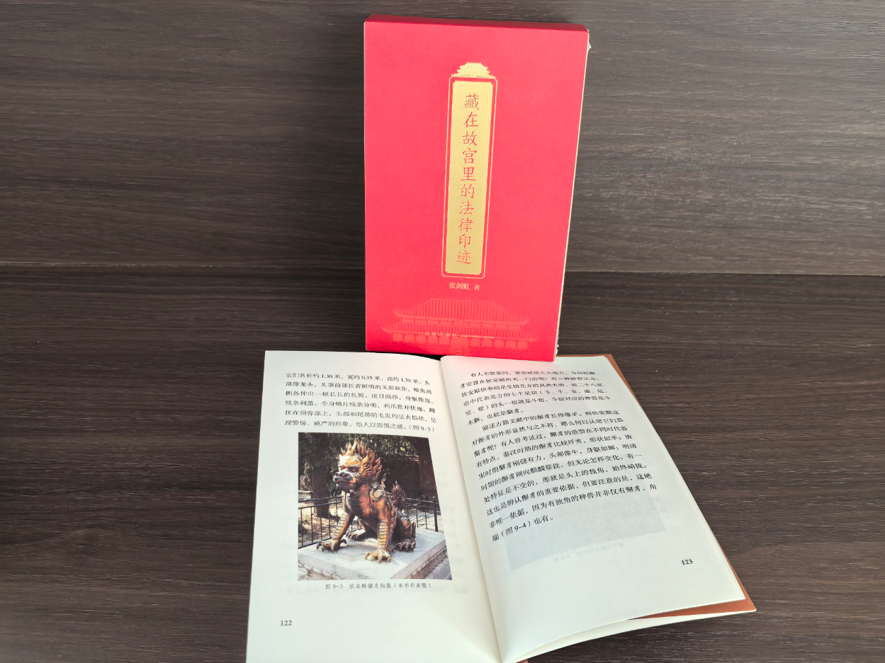 御花园里的獬豸虎目圆睁。它被称为“法兽”,象征清平公正,常出现在法院门前等处。故宫博物院研究馆员张剑虹说,建筑里的法律痕迹比较隐蔽,需要去发掘。比如太和殿的台阶有几级,柱子有多粗,还有宫墙布局,什么人走哪道门,都算是古代“宫禁律”。“有些文物上刻着工匠的名字,这类似于商品质量法,一旦有质量问题可以找到人追责。”
