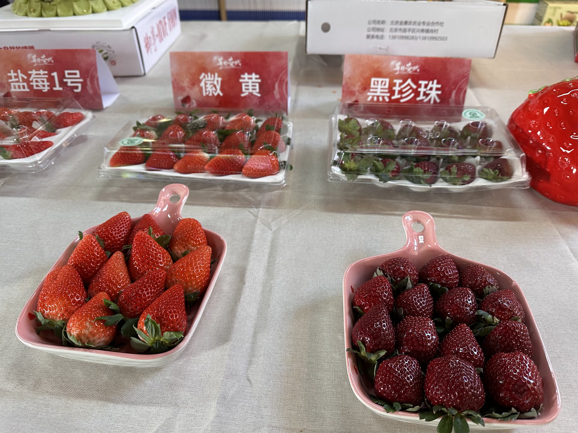 北京市农业技术推广站高级农艺师马欣介绍,这些优新品种个个都有自己的特色,例如来自内蒙古的新款红色草莓品种宝珠,甜度最高可达18度,咬上一口香甜爆汁。来自北京市特色作物创新团队自育的粉色草莓京昌1号,外观粉嫩有光泽,是颜值与风味并存的本地品种。市场上较少见到的深色草莓品种黑珍珠,是一款甜草莓,糖度在草莓季中后期也能达到16度以上,口感品质十分出色。