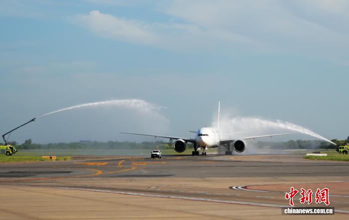 当地时间12月4日16时44分,东航MU745航班平稳降落在阿根廷首都布宜诺斯艾利斯的埃塞萨国际机场,当地以象征国际民航最高礼仪的“水门仪式”为远道而来的旅客和机组人员接风洗尘。
