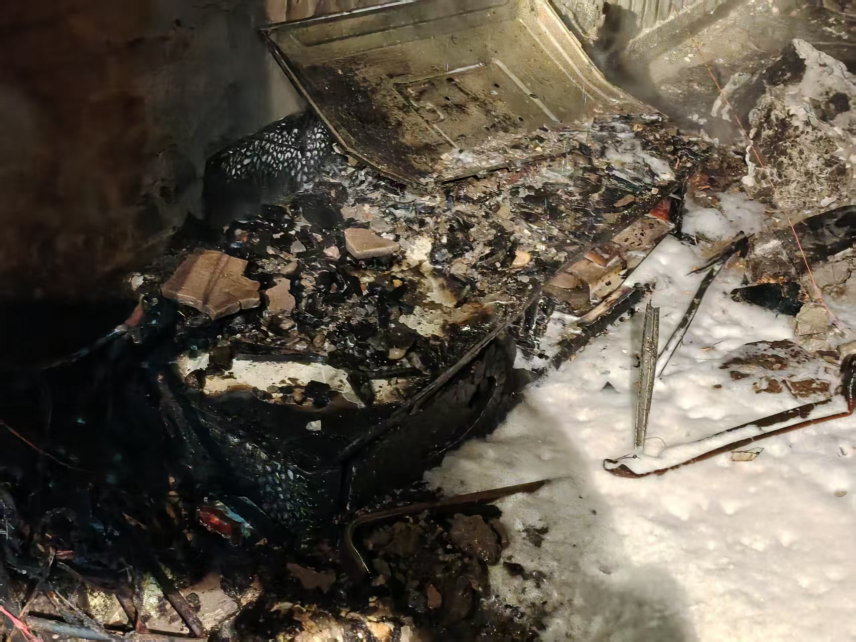 消防救援人员赶到现场后立即组织扑救,不过因火势发展迅猛,崔大爷家中的电视机已被烧毁,相邻的电视机柜、沙发等家具均被不同程度烧焦,地面上散落着燃烧后的灰烬。