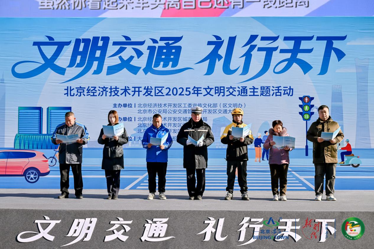 12月2日,在第十四个“全国交通安全日”到来之际,北京经济技术开发区(简称“北京经开区”,又称“北京亦庄”)举办了2025年公共文明引导——“文明交通 礼行天下”主题活动。北京经开区企业职工、社区群众、文明单位及志愿者等代表齐聚大族广场,通过倡议宣誓、表彰先进、智慧体验、互动游戏等多元形式,共同践行亦庄新城文明交通理念。