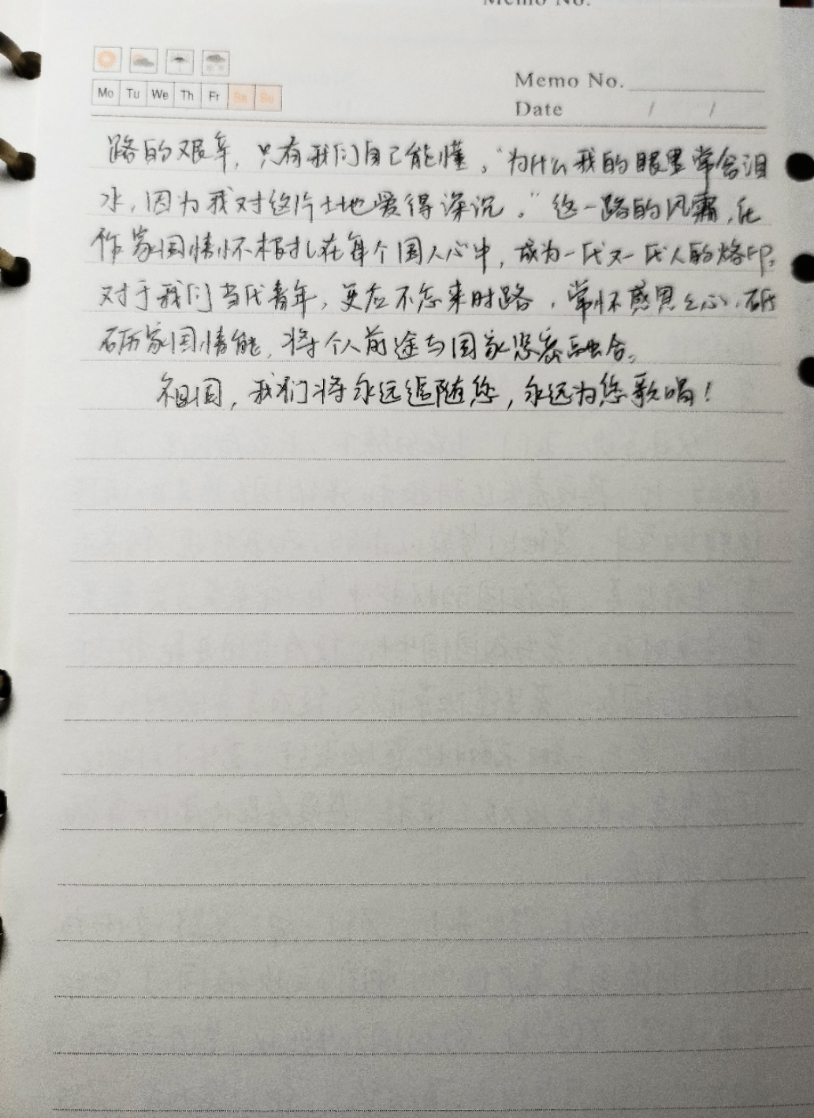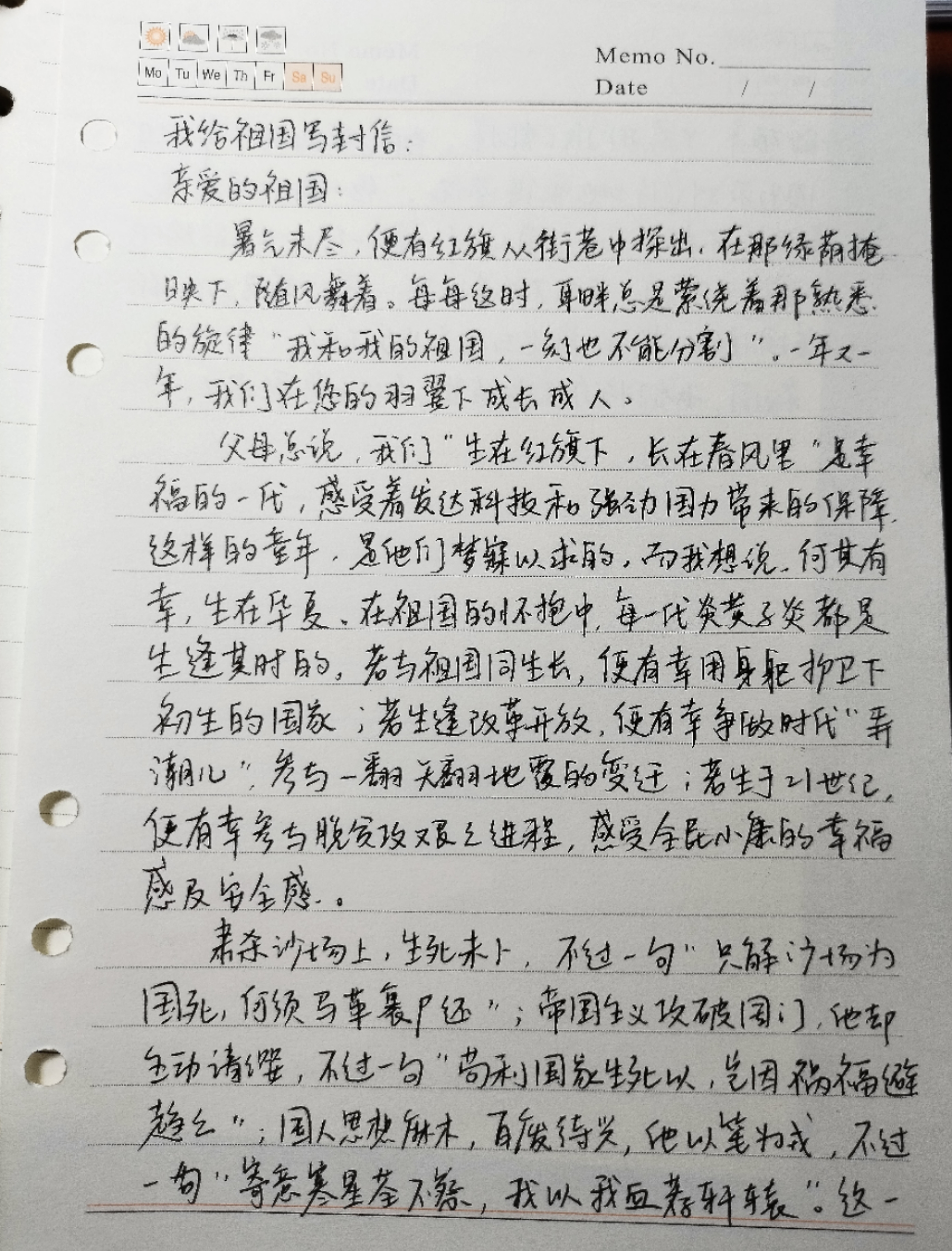今天这幅AI绘画作品的原型来自北京市第二中学十年级(12)班张可越的书信作品《写给祖国》。
