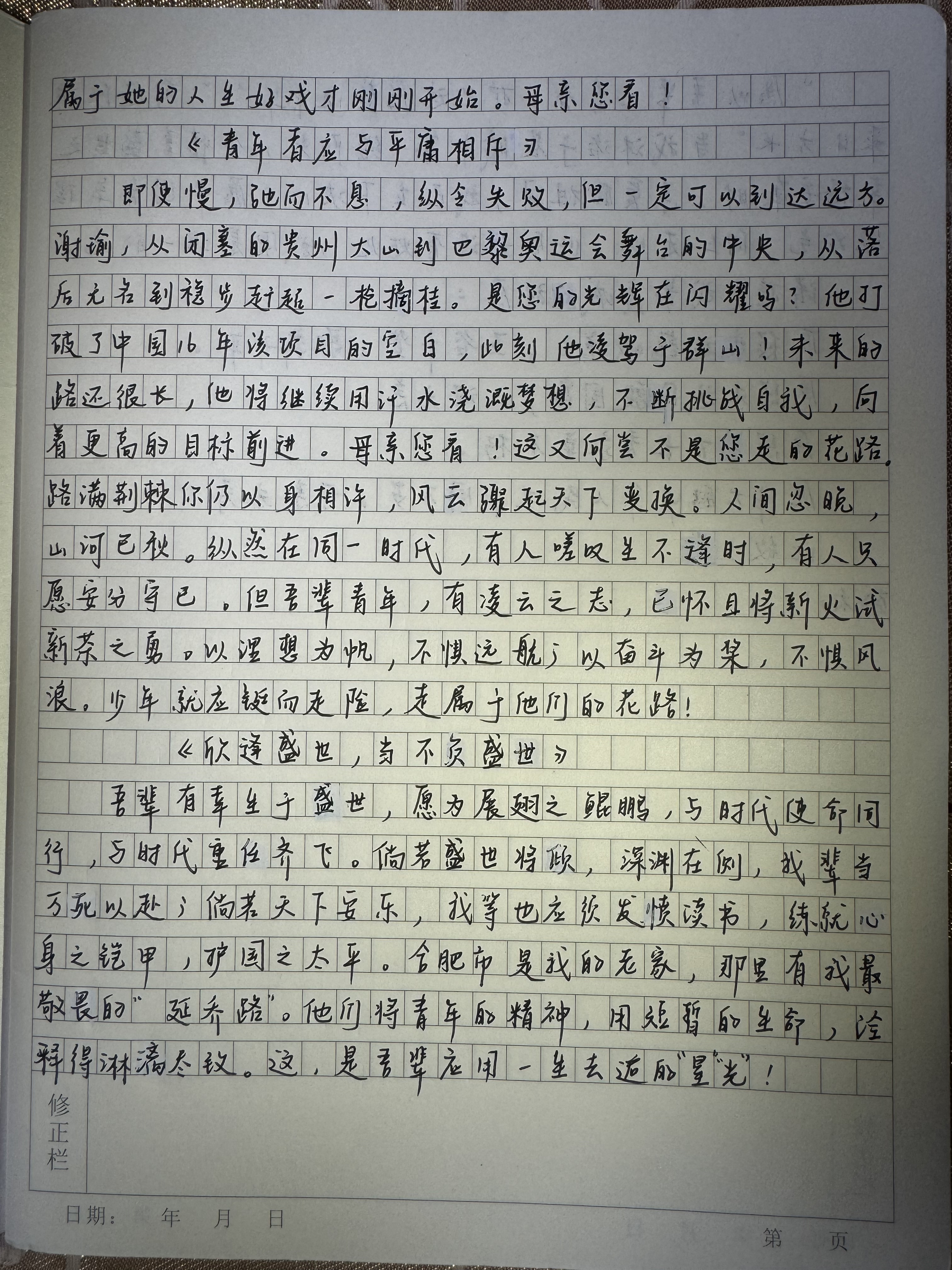 今天这幅AI绘画作品的原型来自首师大附属丽泽中学十年级(4)班李佳仪的书信作品《聆听穿越时空的回声,唯我少年郎!》。