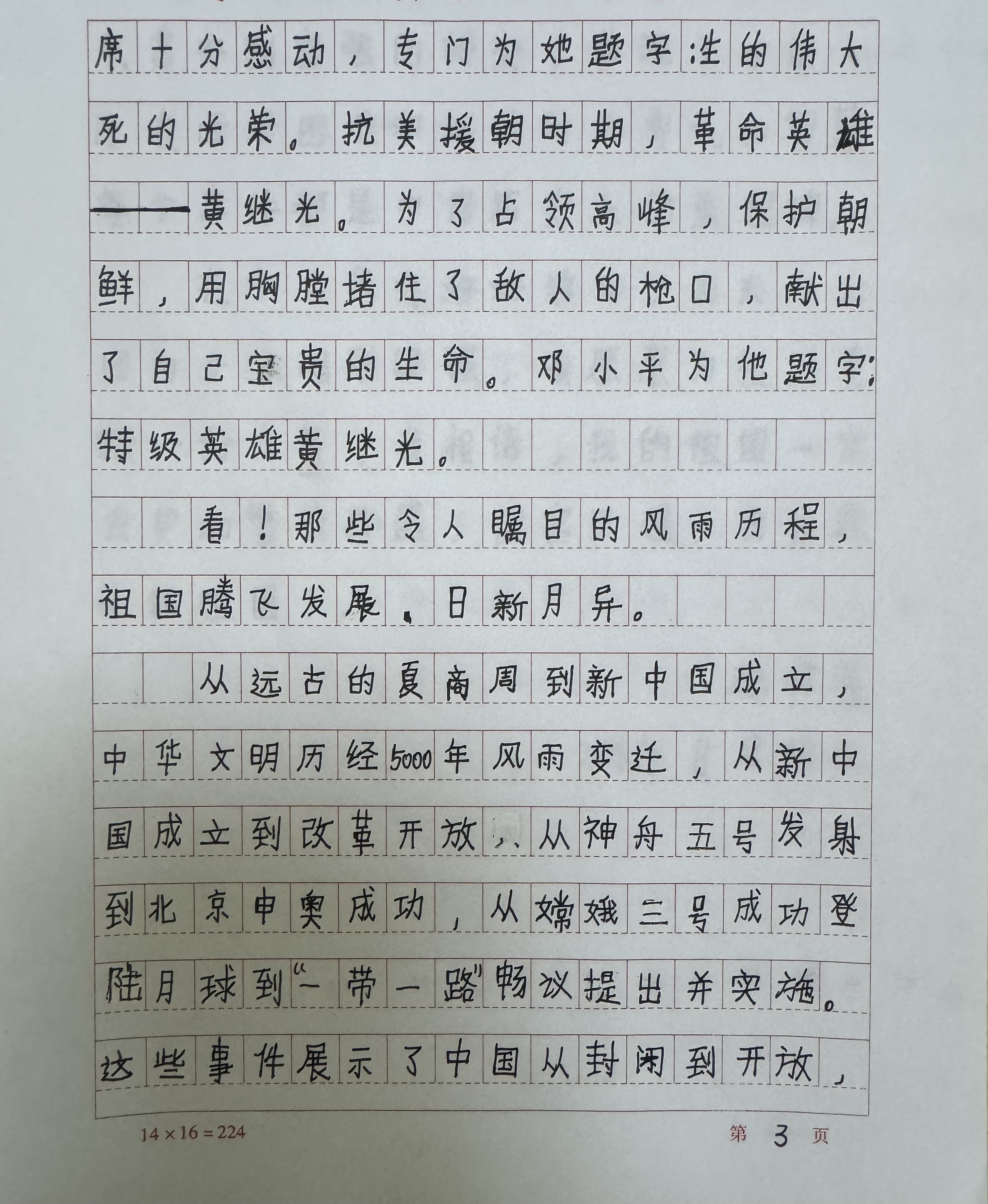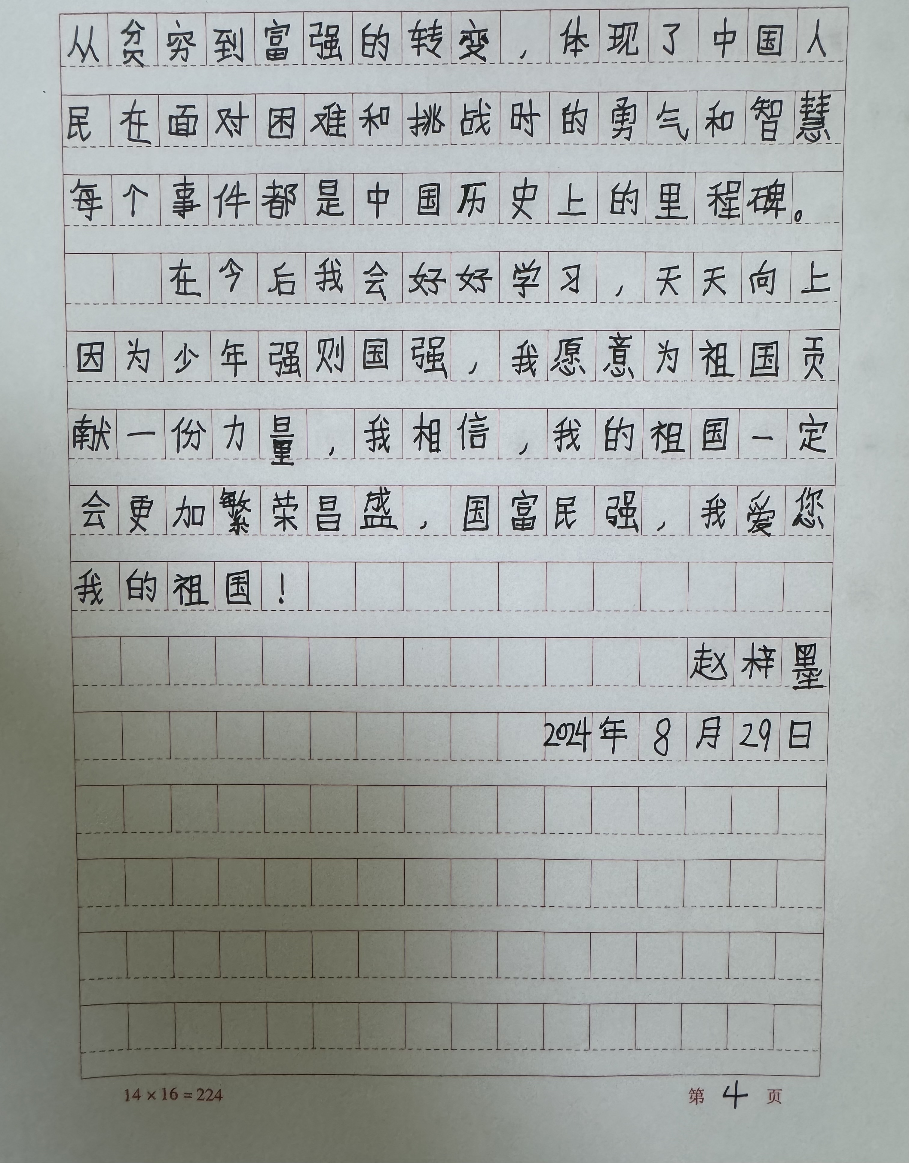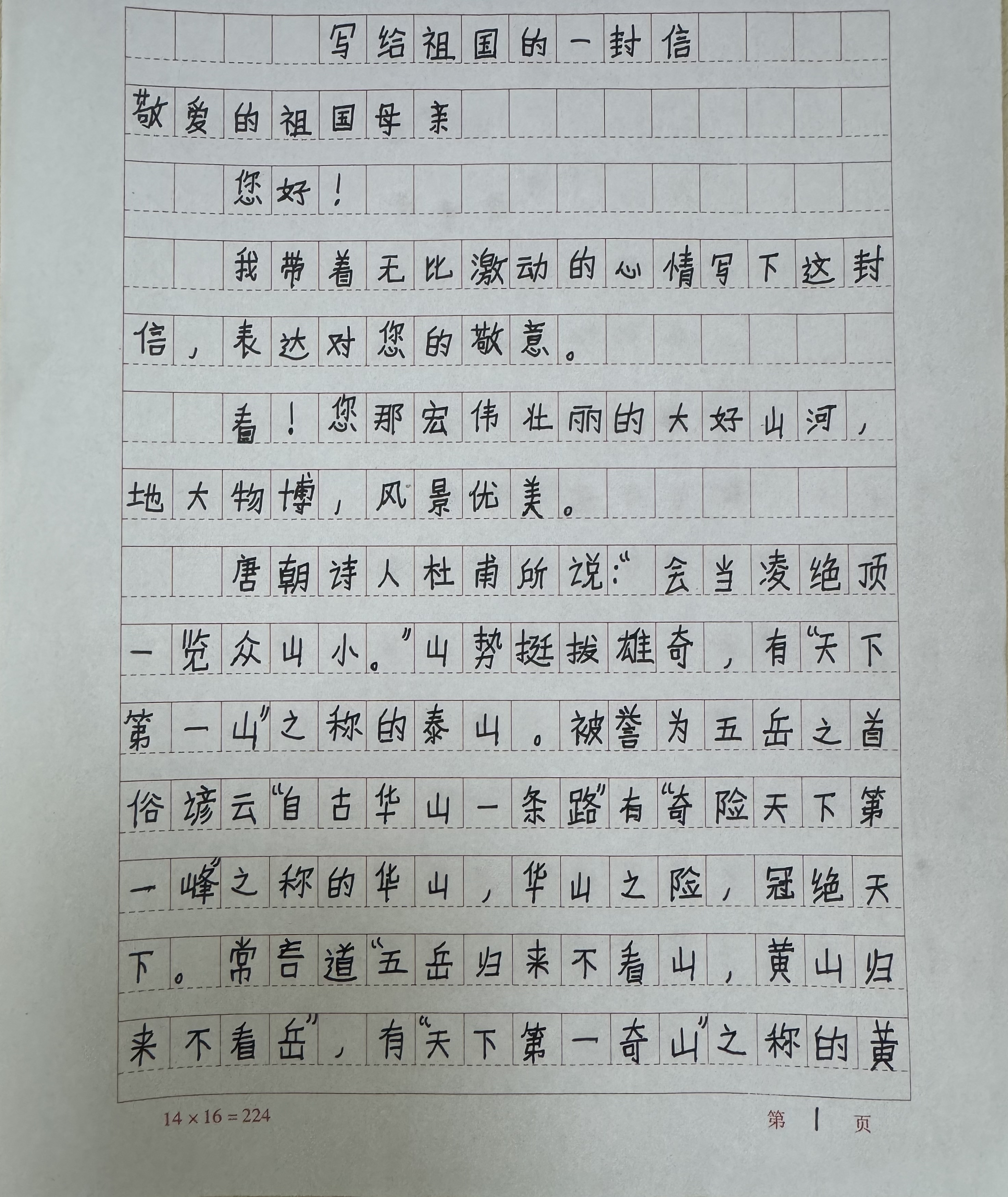 今天这幅AI绘画作品的原型来自顺义区赵全营中心小学校四年级(3)班赵梓墨的书信作品《写给祖国的一封信》。