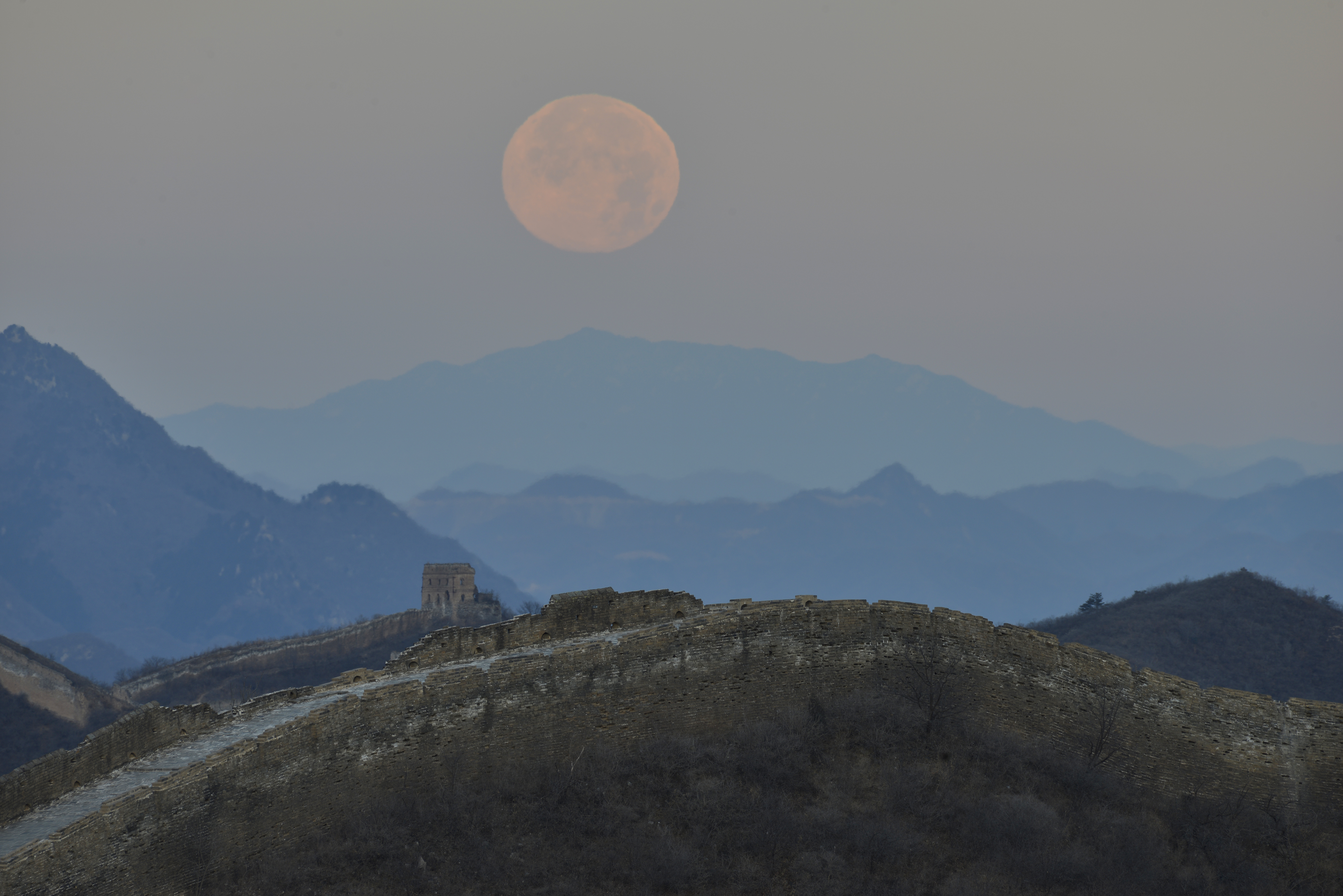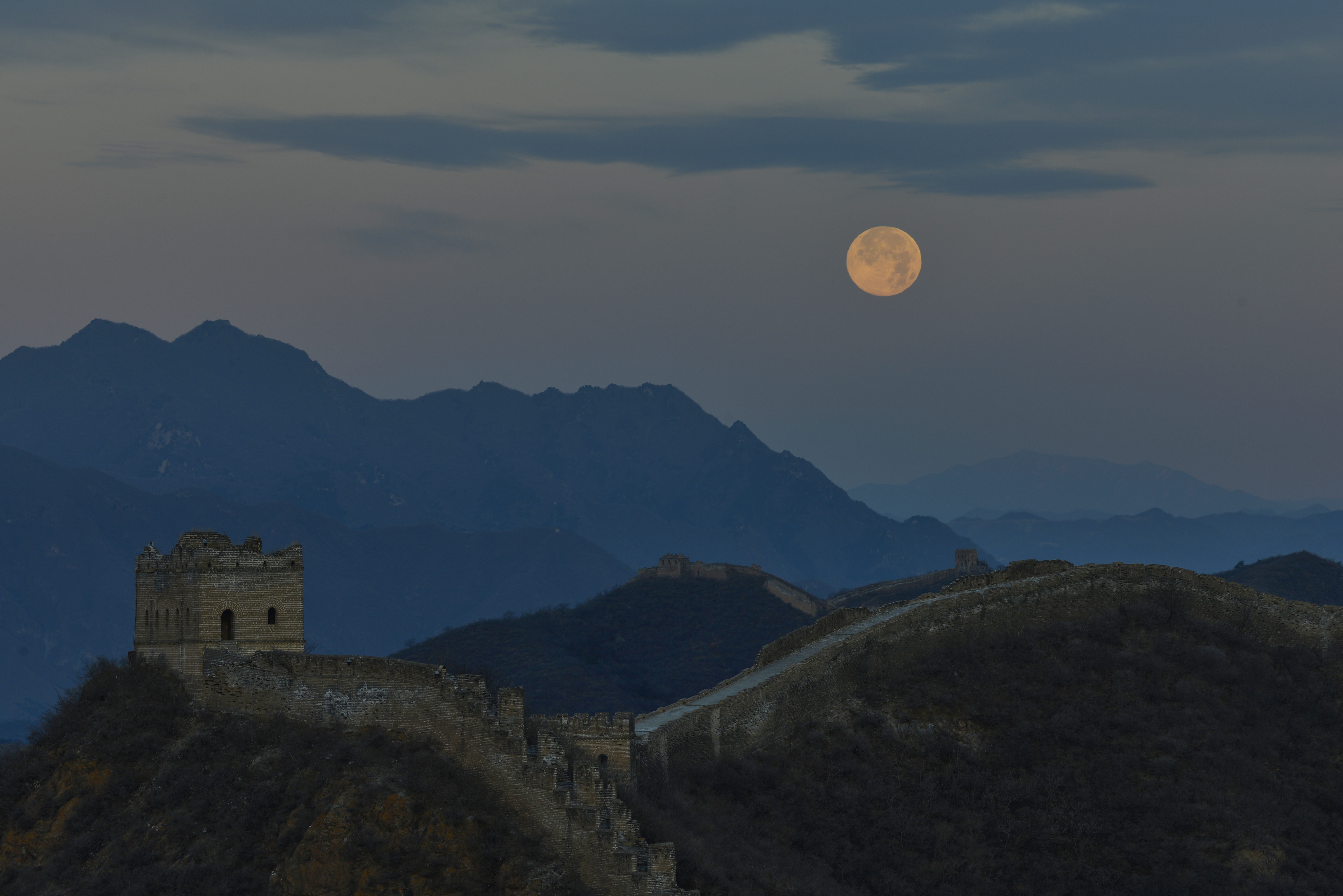 河北滦平:满月当空映长城