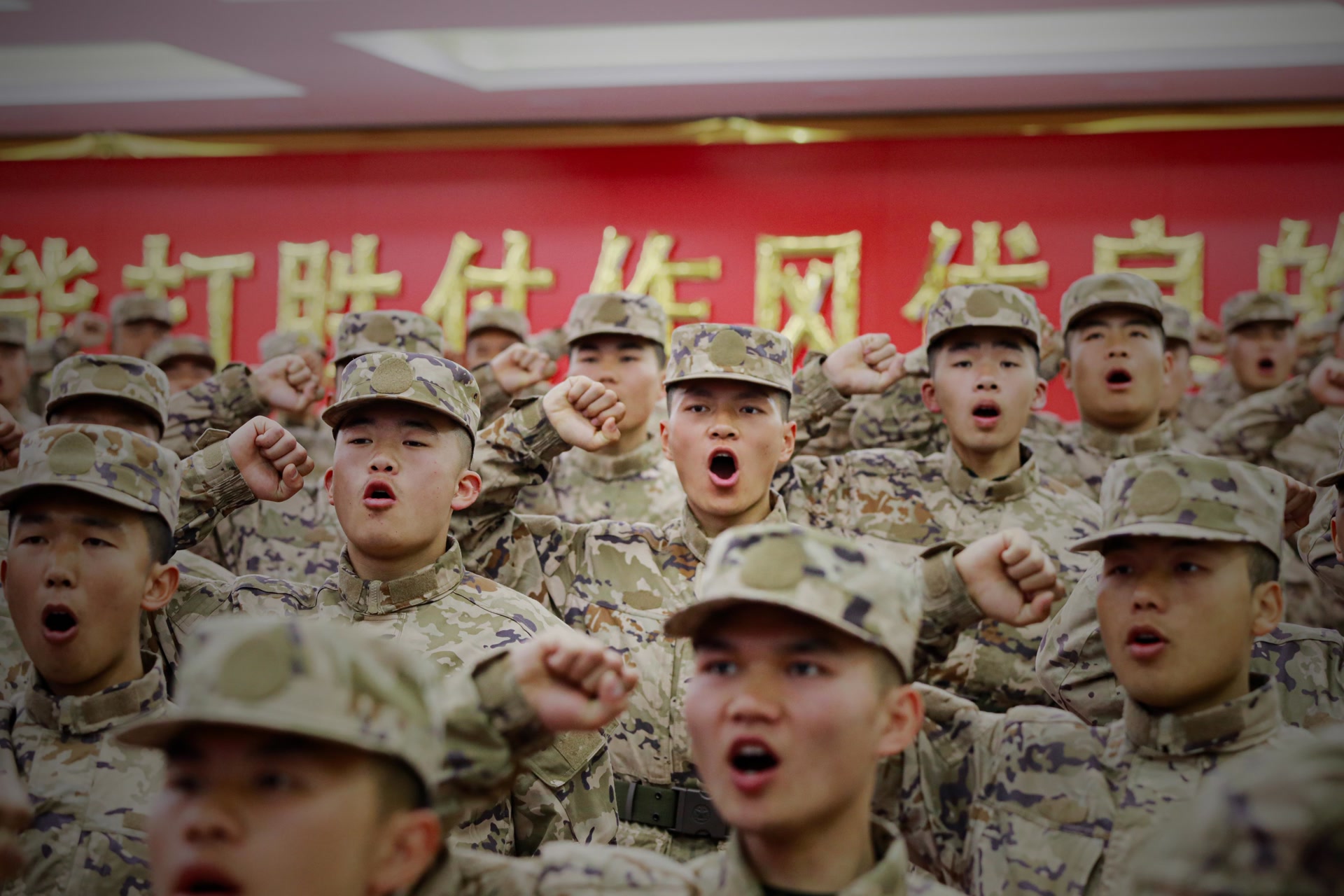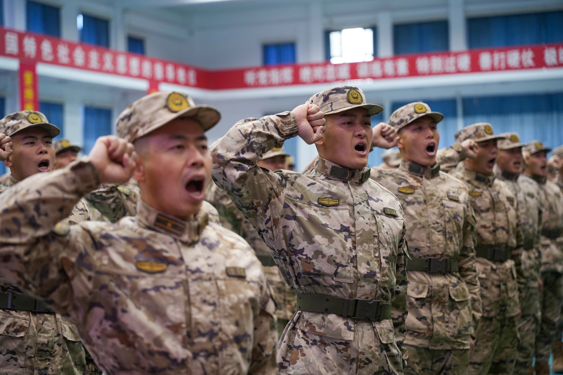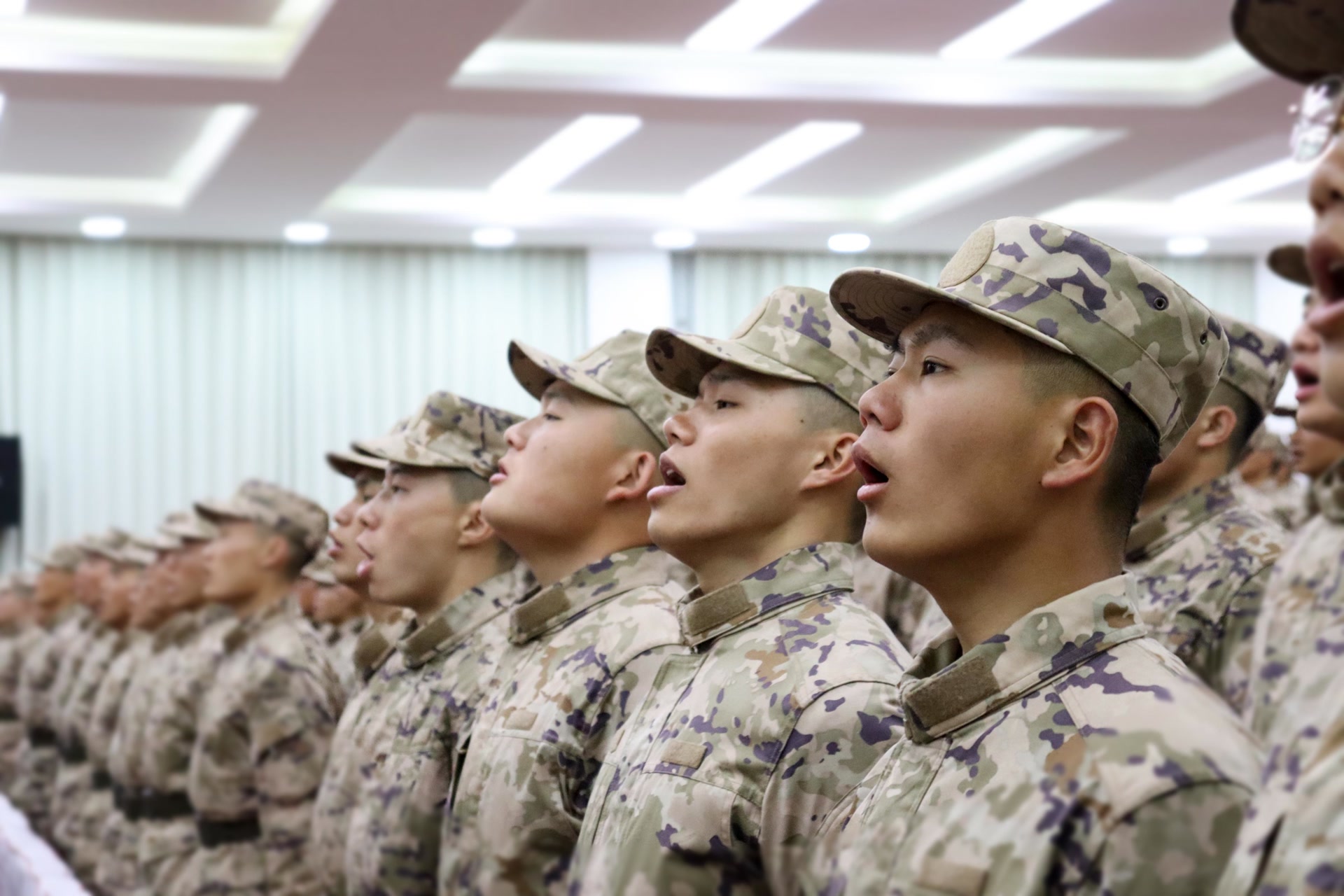 “我是中国人民解放军军人,我宣誓......”佩戴上崭新警衔的新兵们举起右拳庄严宣誓,在鲜红的武警部队旗下,眼神坚毅、誓言铿锵,诠释着他们矢志从军报国的决心和信心。